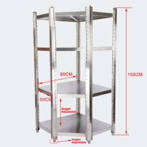 Sada rohové police z nerezové oceli, 1 rohový ks. & 150 a 180x50x155cm