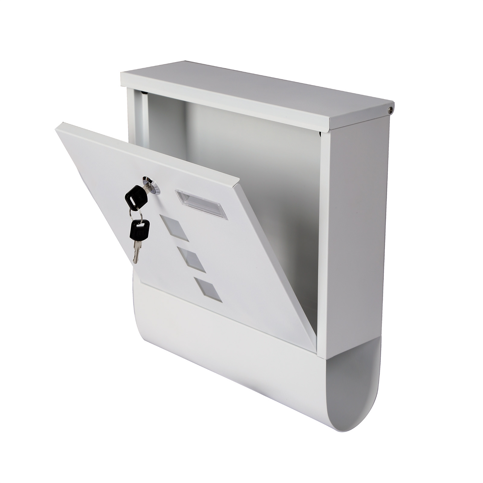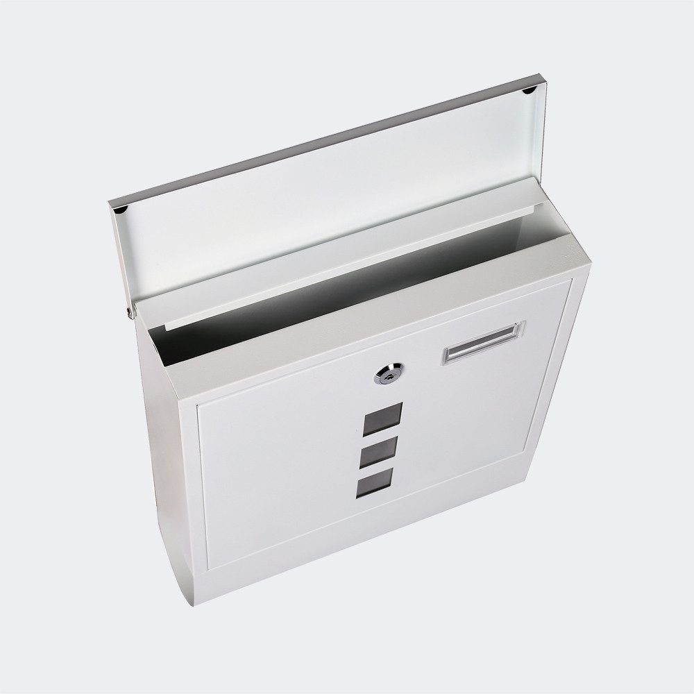 Bílá poštovní schránka s přihrádkou na noviny a okénkem