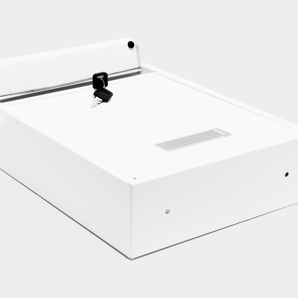 Poštovní schránka z lakované oceli v nadčasově jednoduchém vzhledu. Poštovní schránka má velký slot na dopisy, okénko na jmenovku, je uzamykatelná a je dodávána se dvěma klíči.