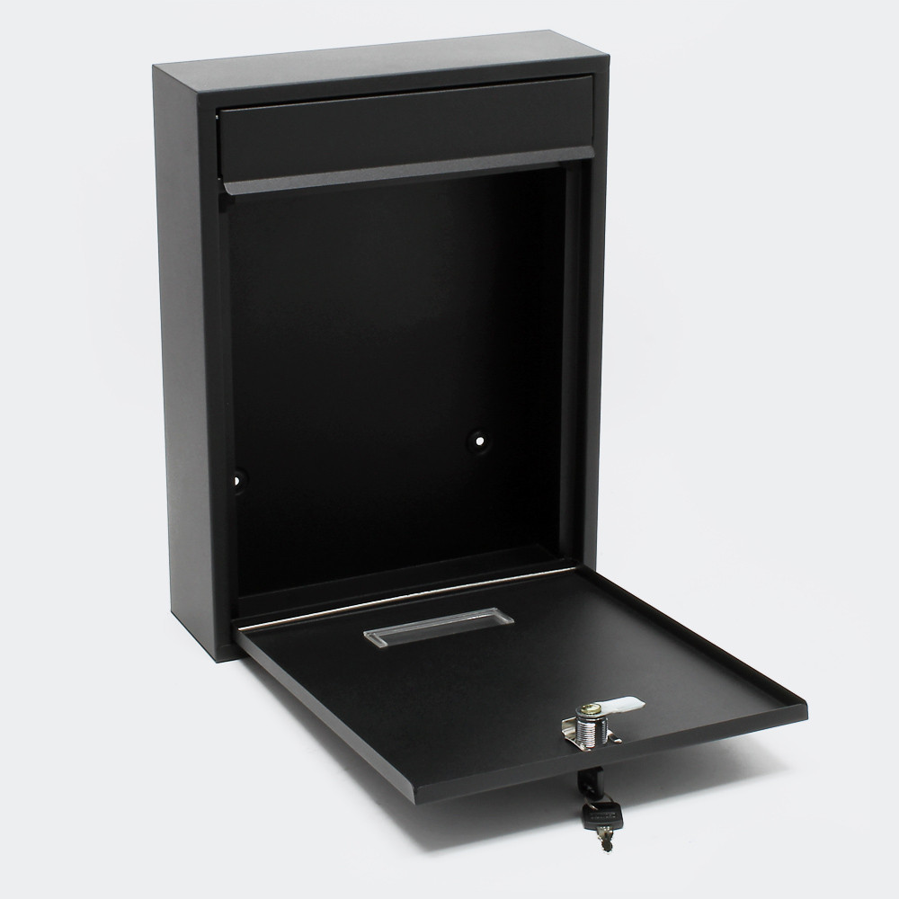 Poštovní schránka z lakované oceli v nadčasově jednoduchém vzhledu. Poštovní schránka má velký slot na dopisy, okénko na jmenovku, je uzamykatelná a je dodávána se dvěma klíči.