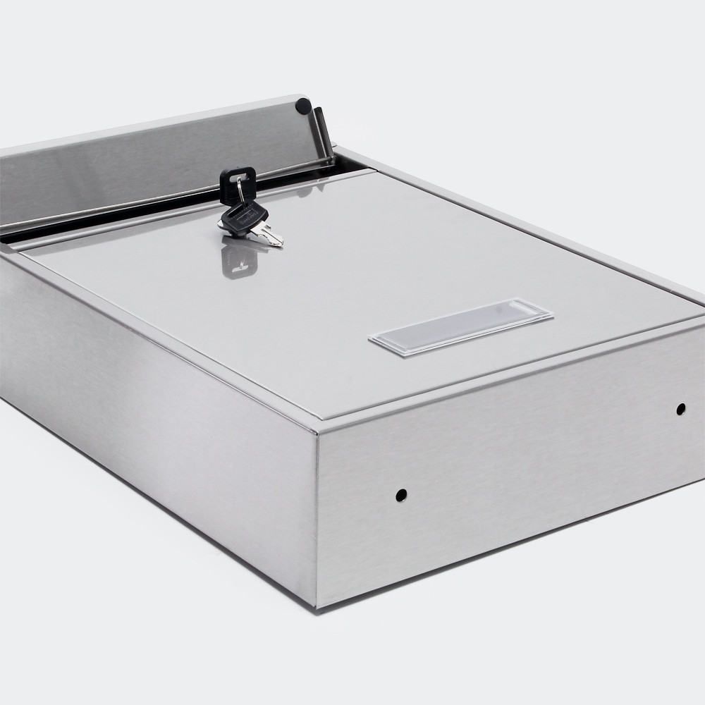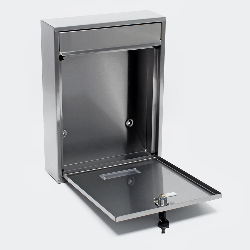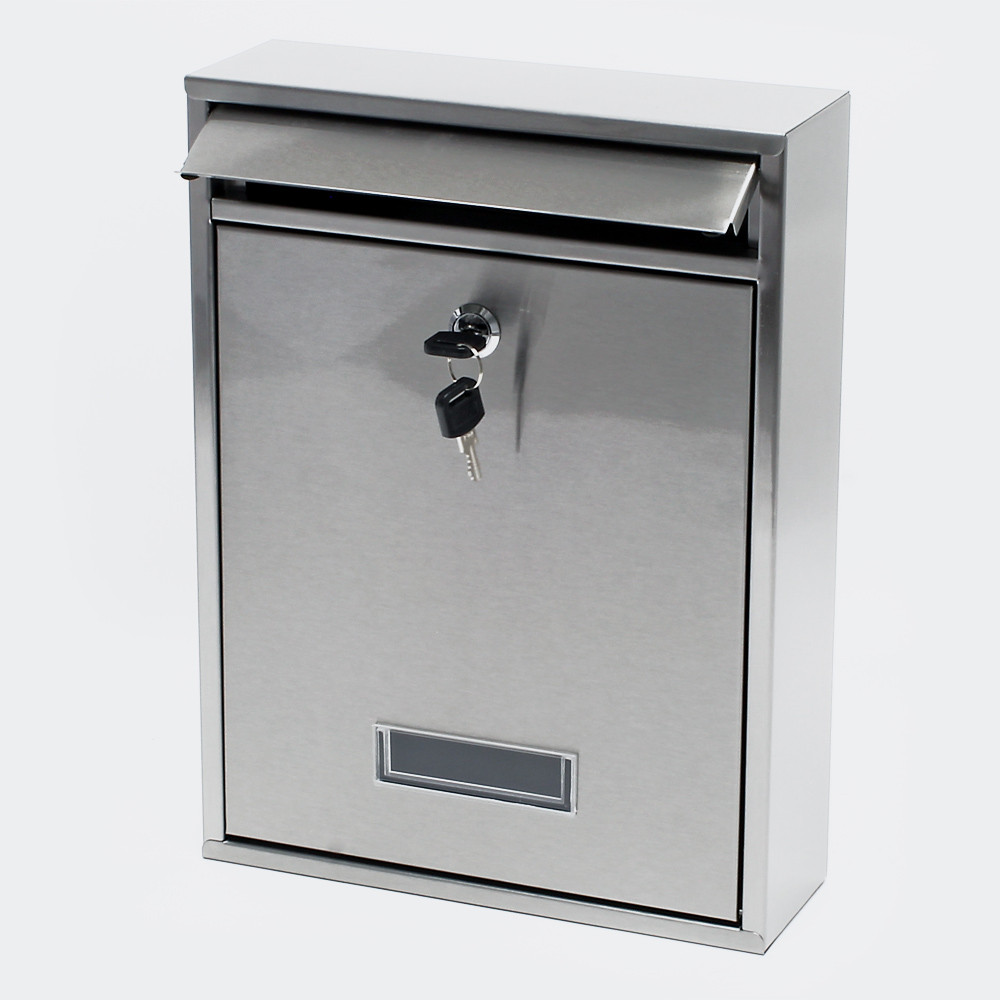 Poštovní schránka z nerezové oceli 201 v nadčasově jednoduchém vzhledu. Poštovní schránka má velký slot na dopisy, okénko na jmenovku, je uzamykatelná a je dodávána se dvěma klíči. Součástí je i montážní materiál.