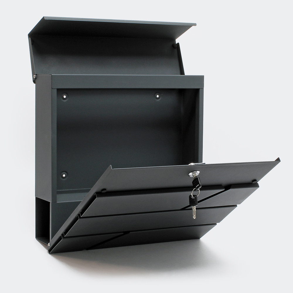 Designová poštovní schránka z lakované oceli s nadčasovým elegantním vzhledem. Poštovní schránka má velkou přihrádku na dopisy, je uzamykatelná a je dodávána se dvěma klíči. Součástí je i montážní materiál. Na spodní straně je také přihrádka na noviny, takže noviny už nemusí být mokré před vchodovými dveřmi, ale mají suché místo, dokud je nepřinesou do domu.