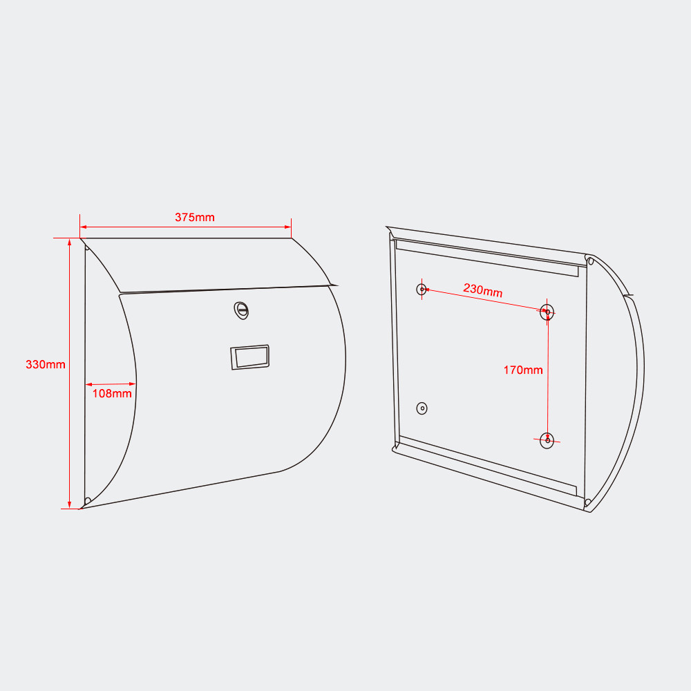 | Rozměry: | Poštovní slot: 325 x 30 mm Poštovní schránka: 375 x 330 x 108 mm |