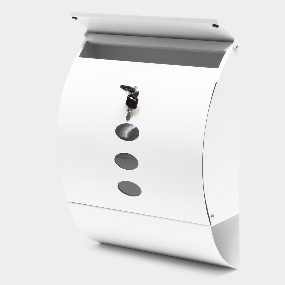 Designová poštovní schránka z potažené oceli v nadčasové efektní optice. Poštovní schránka má velký holubí otvor, je uzamykatelná a dodává se se dvěma klíči. Součástí dodávky je také montážní materiál. Dále je na spodní straně přihrádka na noviny, takže noviny nemusí déle zůstat v dešti venku před vchodem, ale musí mít suché místo.