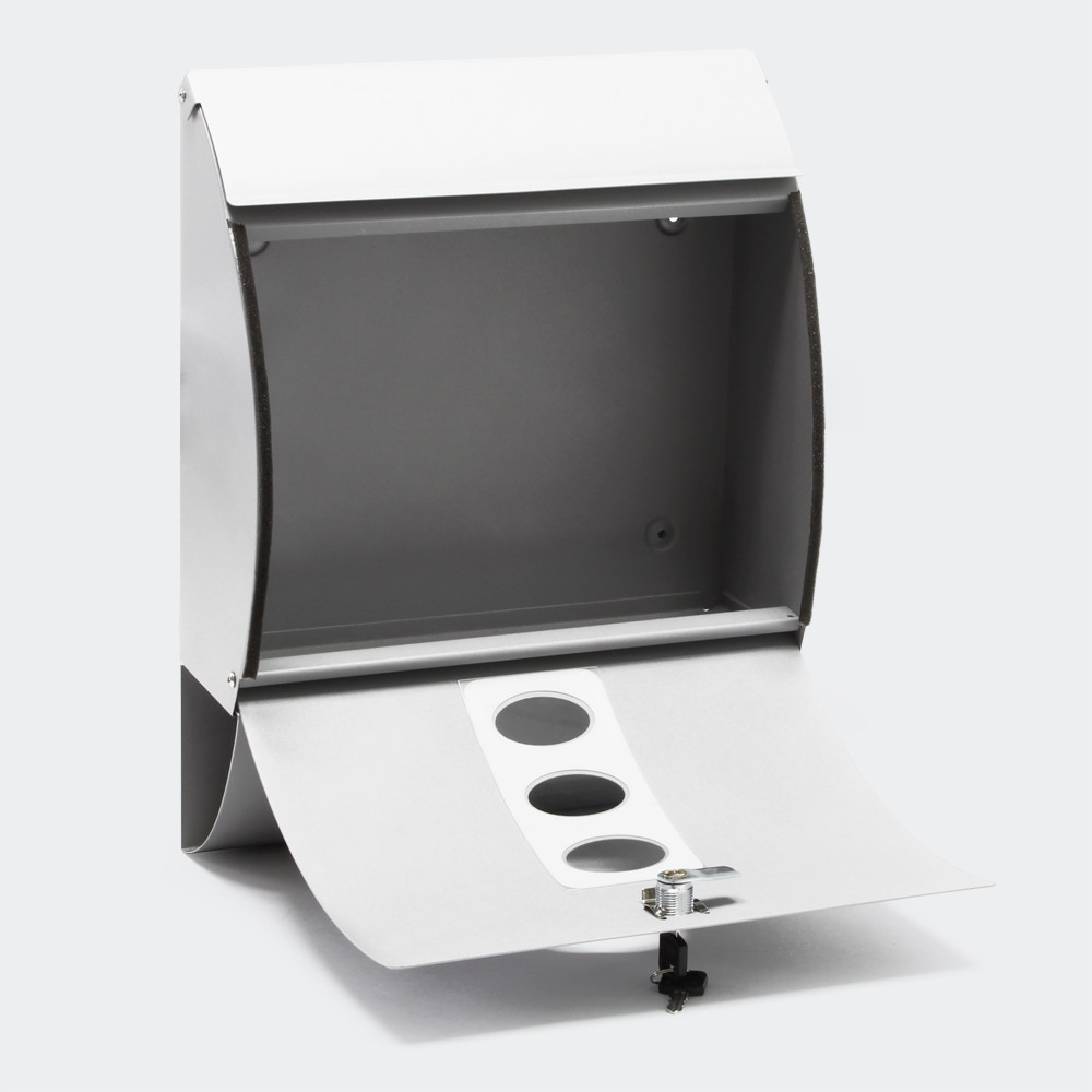 Designová poštovní schránka z potažené oceli v nadčasové efektní optice. Poštovní schránka má velký holubí otvor, je uzamykatelná a dodává se se dvěma klíči. Součástí dodávky je také montážní materiál. Dále je na spodní straně přihrádka na noviny, takže noviny nemusí déle zůstat v dešti venku před vchodem, ale musí mít suché místo.