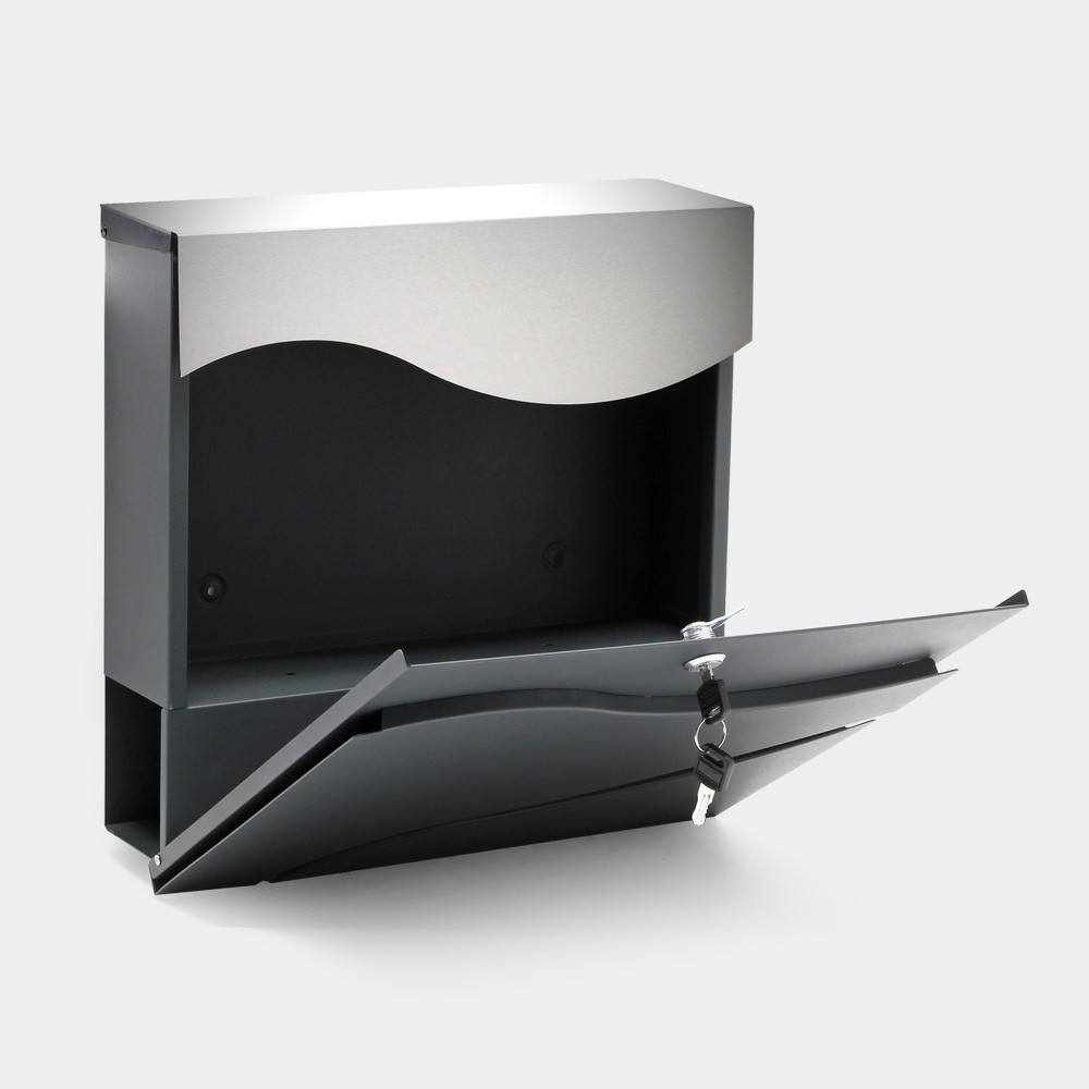 Designová poštovní schránka z pozinkované oceli s práškově lakovaným povrchem v nadčasově šik vzhledu.