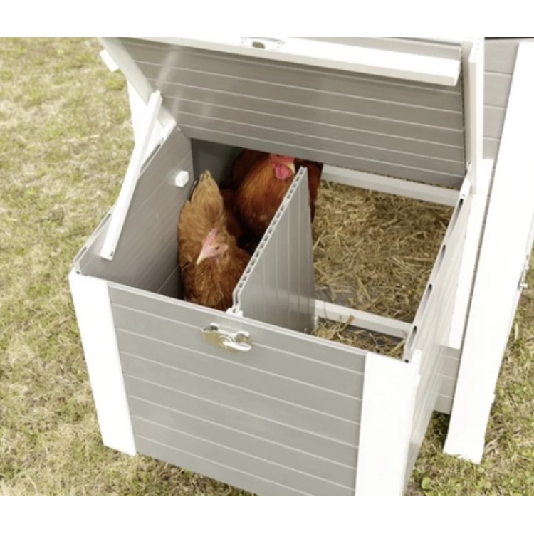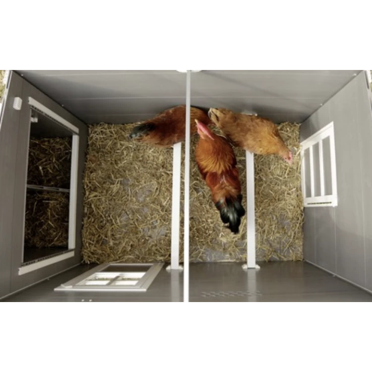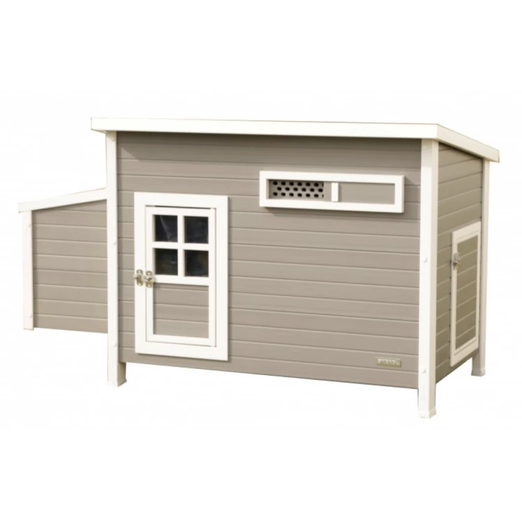 Naprosto bezúdržbový kurník vyrobený ze směsi plastu a dřeva s dlouhou životností. Kurník nebo husník s dvěma hřady a jedním bočním hnízdícím boxem. Střecha kurníku je otevírací pro dobrý přístup při čištění. Střecha kurníku je plastová.