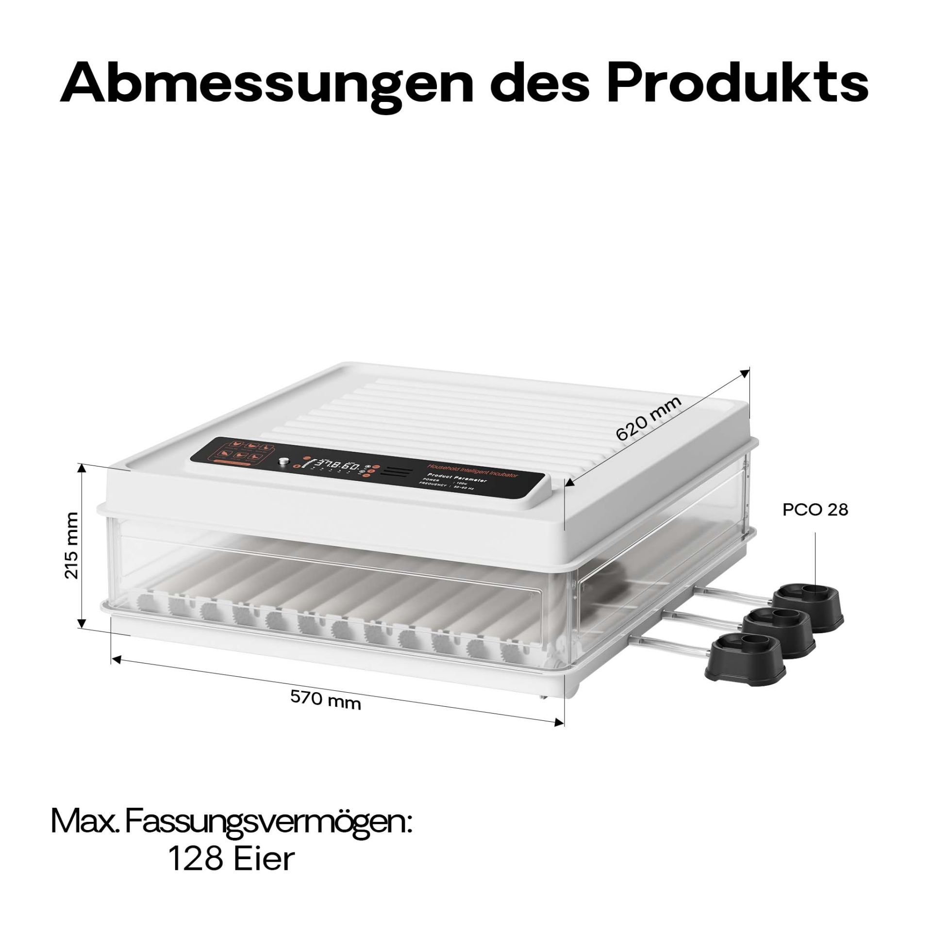 | Kapacita vajec | 128 slepičích vajec nebo jiných ptačích vajec |