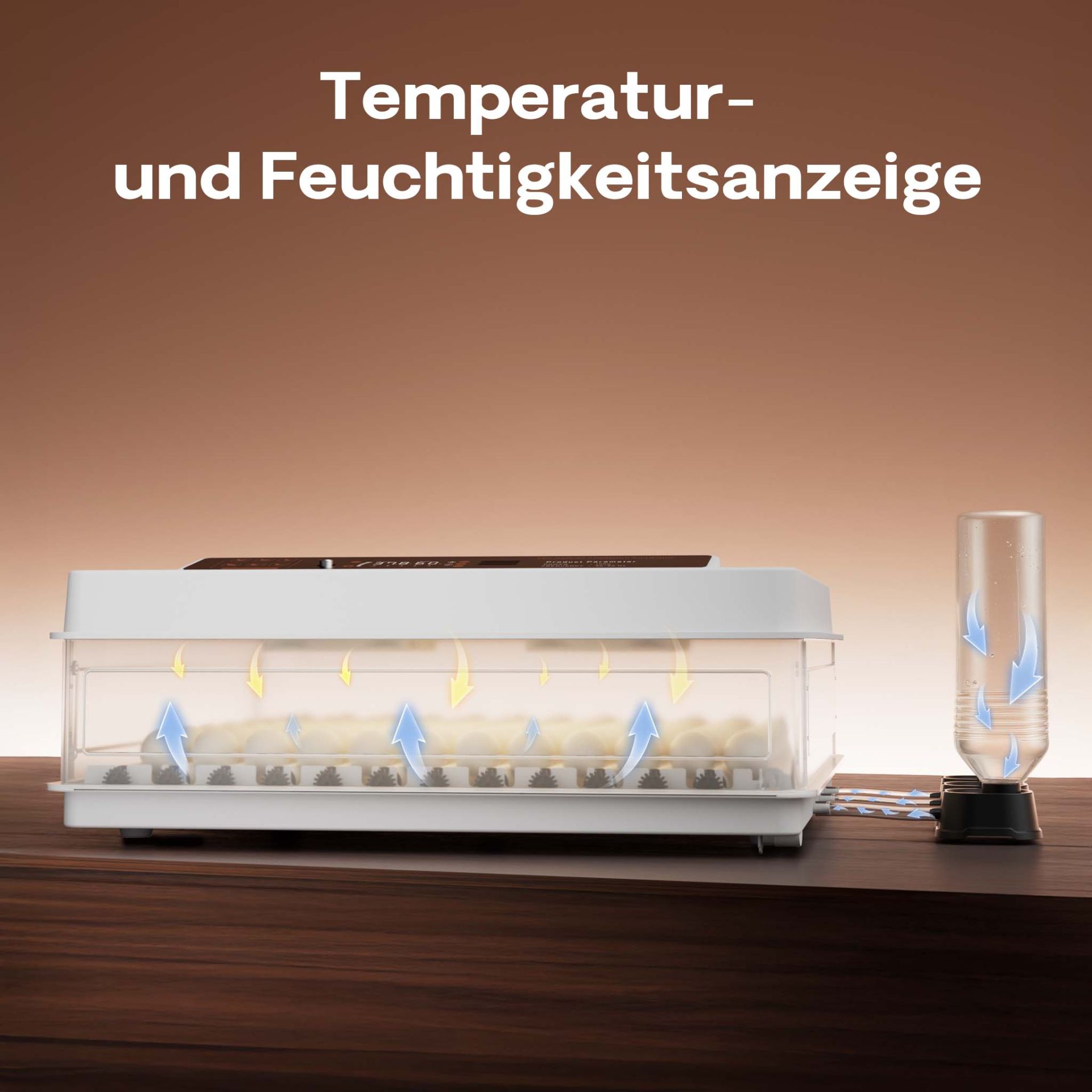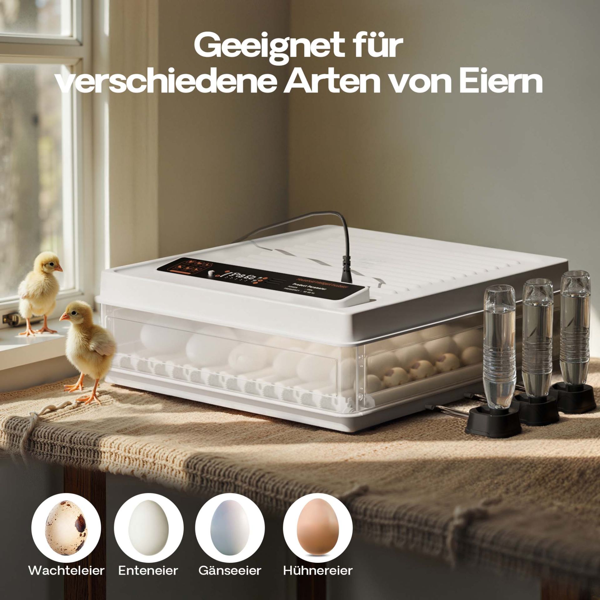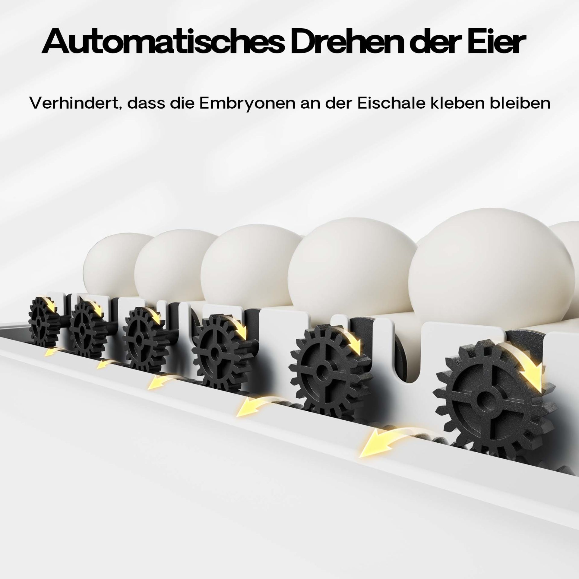 Tento líhní stroj je navržen pro snadné použití a vyžaduje minimální úsilí a zároveň poskytuje výsledky profesionální úrovně. Automatizované funkce, digitální ovládání a transparentní design z něj činí vynikající volbu pro každého, kdo chce líhnout vejce s přesností a spolehlivostí.