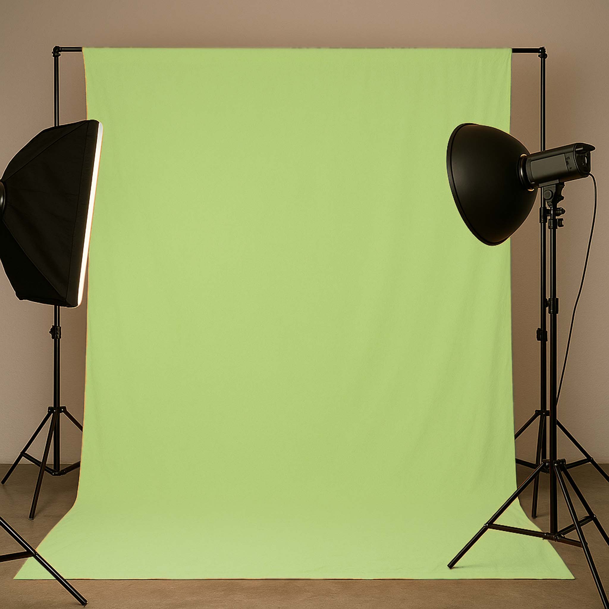žlutozelené barvě se dodává kompaktně složené. Vzniklé záhyby lze v případě potřeby vyžehlit. Tloušťka látky je 140 g/m2, a proto nabízí dostatečnou neprůhlednost pro většinu aplikací. Pokud to nestačí, doporučujeme použít silnější látkové pozadí nebo kartonové pozadí. Látkové pozadí není vhodné pro podvodní fotografii.
