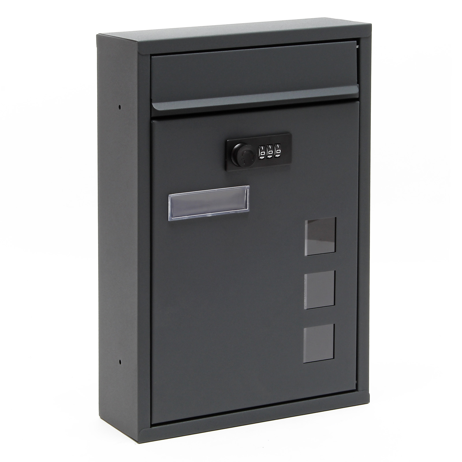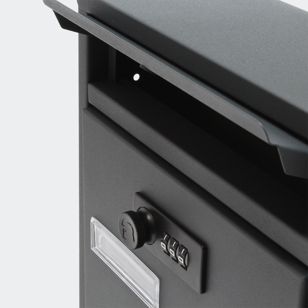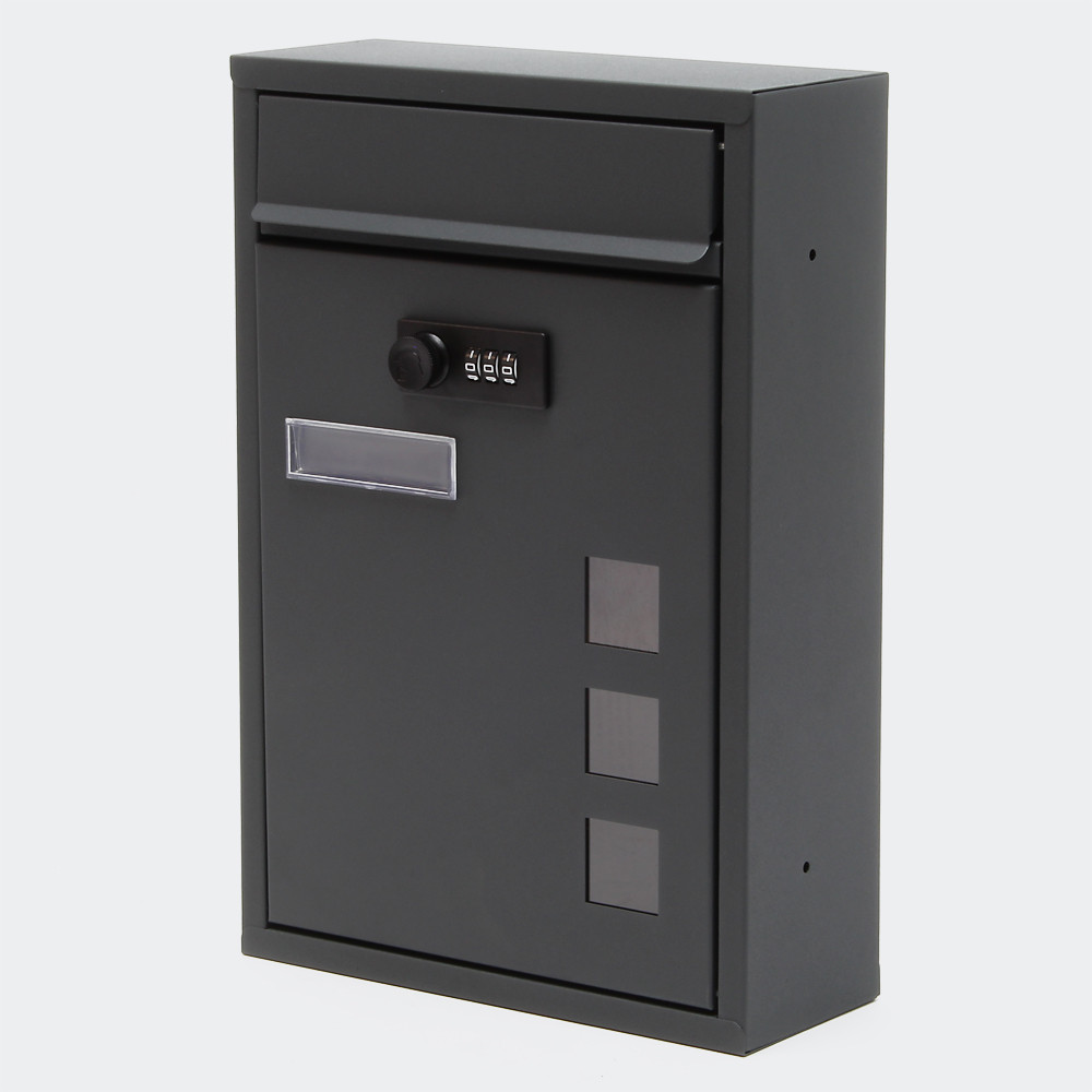 Tato nástěnná poštovní schránka v moderním designu je opravdu pěkná na pohled a upoutá na každé domovní zdi nebo vstupní bráně. Poštovní schránku lze snadno otevřít pomocí kombinačního zámku na přední straně, takže poštovní zásilky lze snadno vyjmout. Klíče tedy nejsou nutné, takže schránku lze kdykoli otevřít, aniž byste museli nejprve získat klíč z domu. Na přední straně je také dobře viditelné okénko se jmenovkou. Poštovní schránka je dodávána včetně montážního materiálu.