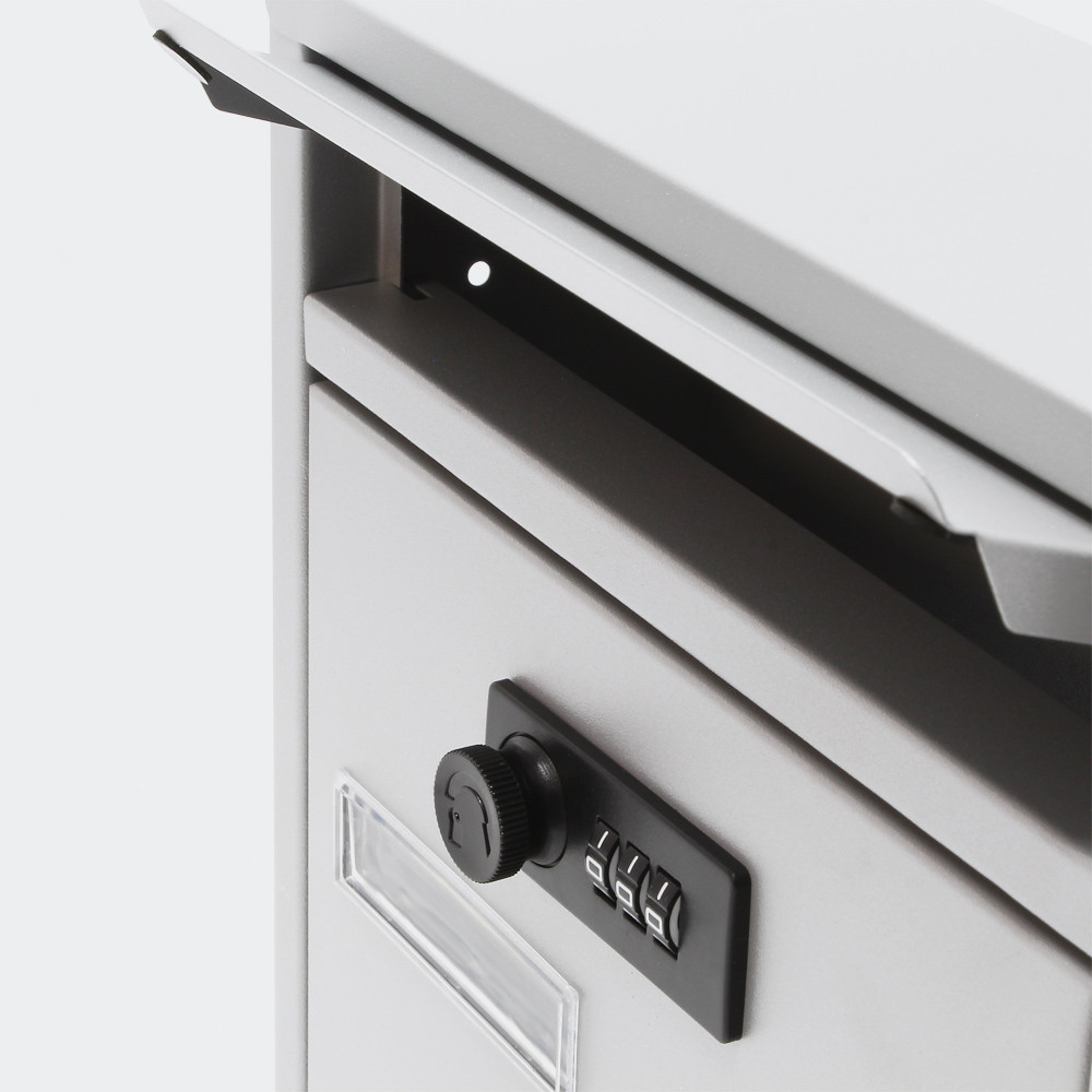 Tato nástěnná poštovní schránka v moderním designu je opravdu pěkná na pohled a upoutá na každé domovní zdi nebo vstupní bráně. Poštovní schránku lze snadno otevřít pomocí kombinačního zámku na přední straně, takže poštovní zásilky lze snadno vyjmout. Klíče tedy nejsou nutné, takže schránku lze kdykoli otevřít, aniž byste museli nejprve získat klíč z domu. Na přední straně je také dobře viditelné okénko se jmenovkou. Poštovní schránka je dodávána včetně montážního materiálu.