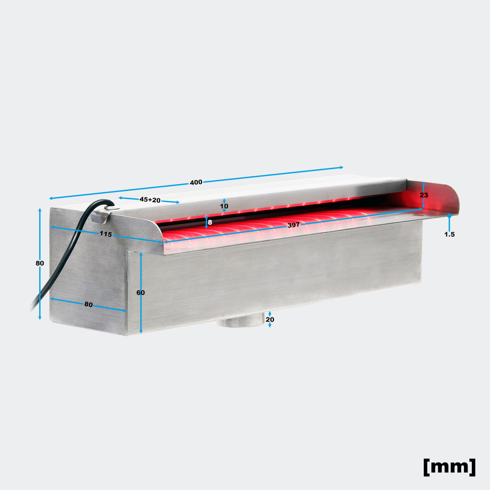 Nástěnný nerezový vodopád přeliv kaskády 40cm LED osvětlení