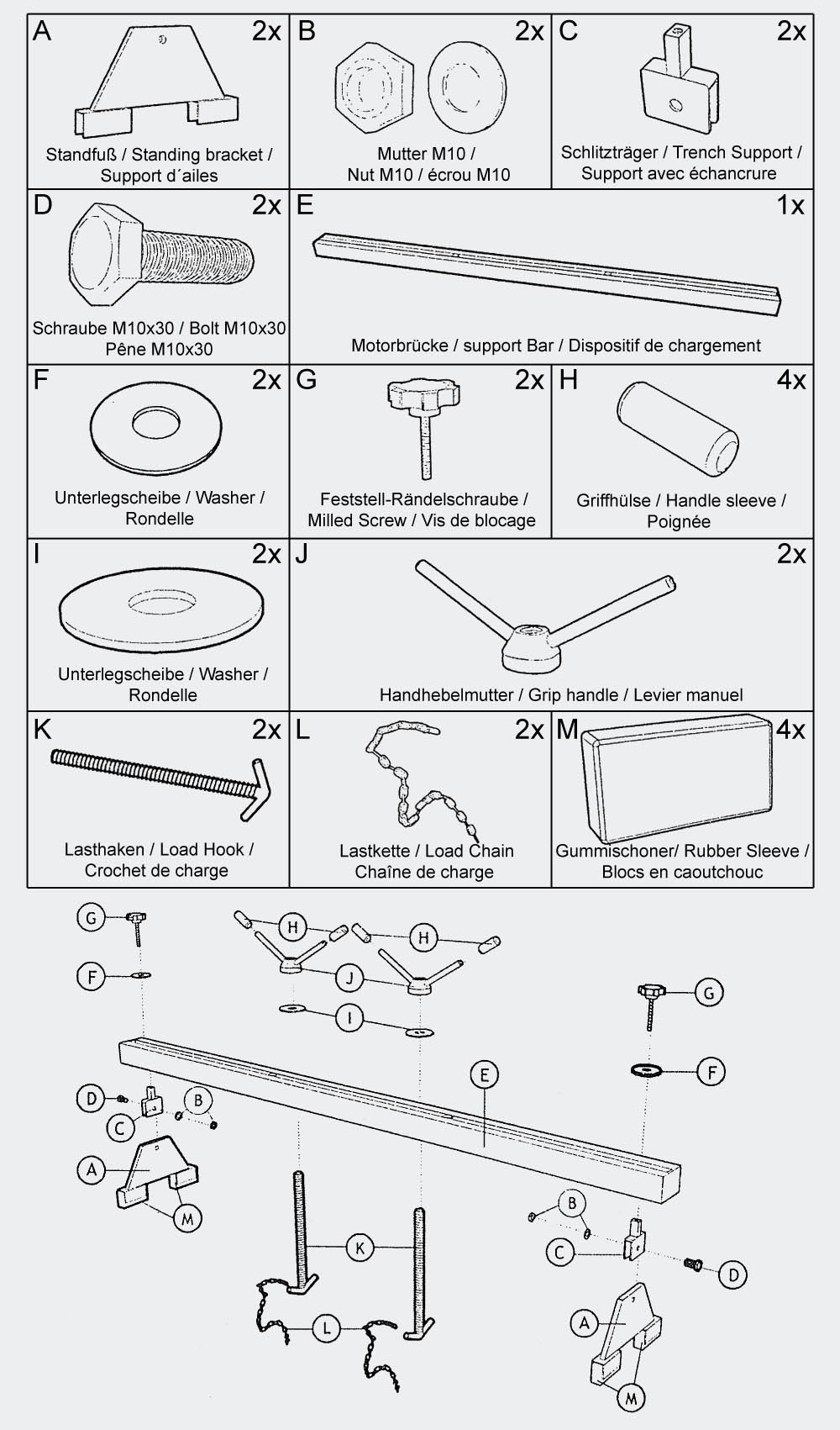 Montáž a demontáž kladkostroje provádí jedna osoba za pár minut. Při montáži a demontáži se zachycení motoru nebo převodovky s hmotností do 500 kg ukázalo jako velmi snadné.