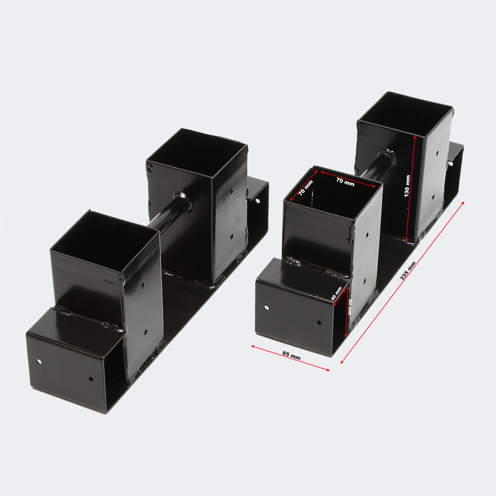 Tyto 2-sada držáky dřevo stohovacímít rozměr: 34 x 10 x 15 cm. Svislý otvor 70 x 70 mm a vodorovný otvor 40 x 60 mm se dokonale hodí k přizpůsobení hranatého dřeva. Držáky z oceli s práškovým nástřikem disponují předvrtanými otvory pro snadnou fixaci trámů, kterými je zajištěna stabilita konstrukce stohování dřeva .