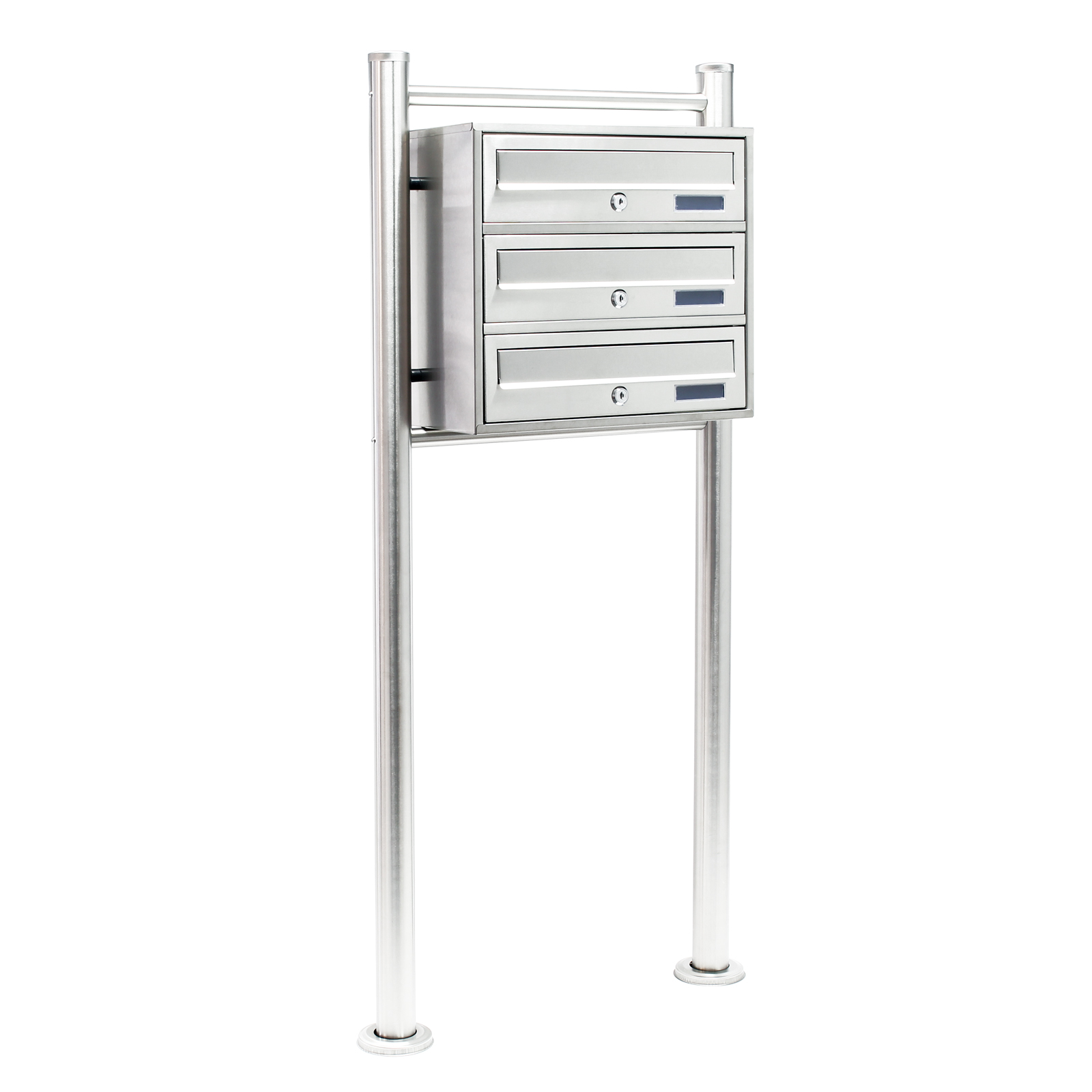 Systém poštovních schránek má 3 přihrádky, každá s vlastním průhledovým okénkem pro jmenovky a dva klíče. To znamená, že systém může jako poštovní schránku používat více lidí. Navzdory mnoha přihrádkám nezabere systém poštovních schránek díky své kompaktní konstrukci téměř žádné místo. 3 přihrádky jsou uspořádány nad sebou.