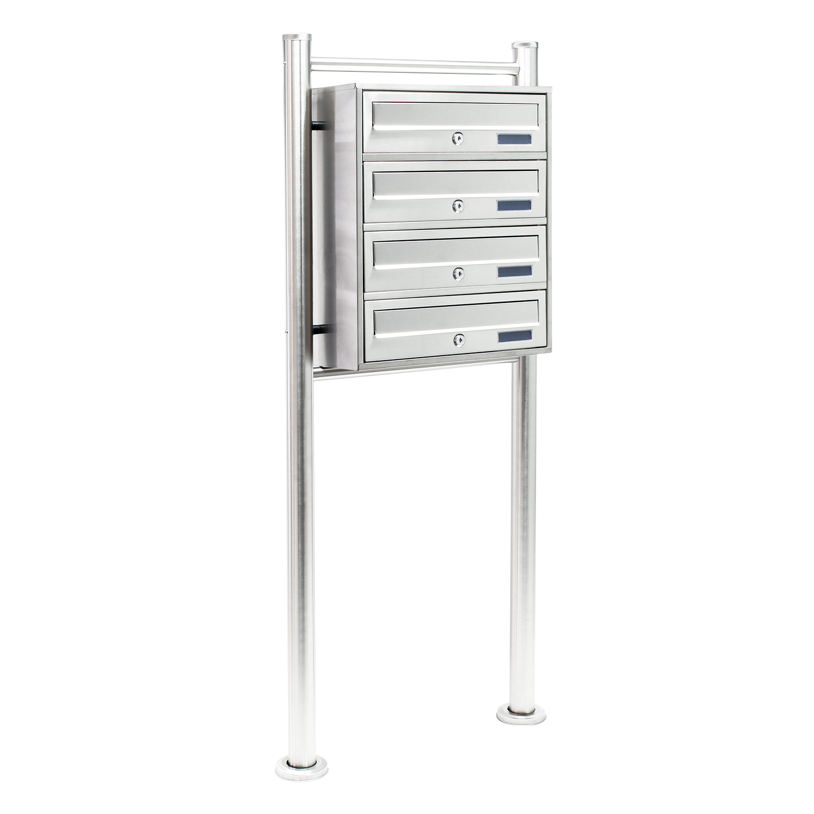 Systém poštovních schránek má 4 přihrádky, každá s vlastním průhledovým okénkem na jmenovky a dva klíče. To znamená, že systém může jako poštovní schránku používat více lidí. Navzdory mnoha přihrádkám nezabere systém poštovních schránek díky své kompaktní konstrukci téměř žádné místo. 4 přihrádky jsou uspořádány nad sebou.