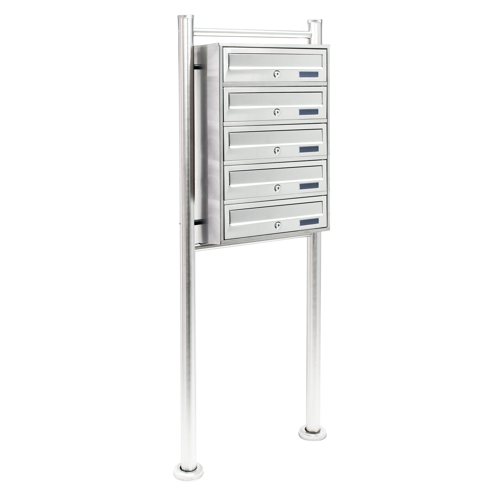 Systém poštovních schránek, který se skládá z celkem 5 případů, z nichž každý nabízí malou plochu 70 x 20 mm speciálně určenou pro jmenovky, je ideální pro rezidenční domy pro více rodin. Každá z přihrádek je dále vybavena 2 klíči, které nabízejí další náhradní klíč pro případ, že by došlo ke ztrátě klíče.