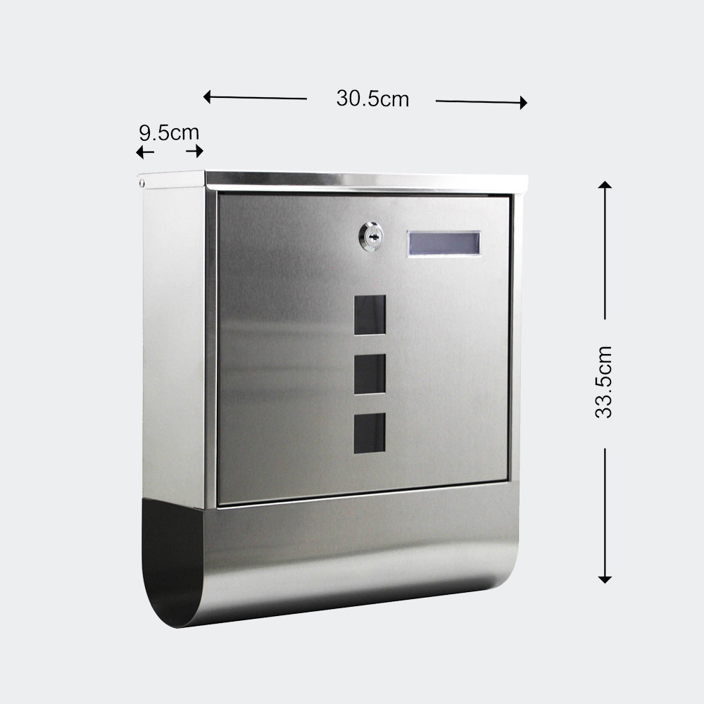 Tato elegantní poštovní schránka z vysoce kvalitní nerezové oceli zaujme svým stylovým designem. Se svými 30,5 x 9,6 x 33,5 cm (Š x H x V) nezabere téměř žádné místo, ale nabízí spoustu místa. Do otvoru se vejdou i písmena o rozměrech 245 x 35 mm. Tato schránka má navíc praktickou novinovou roli. To umožňuje noviny snadno srolovat a umístit do tuby. Pryč jsou doby, kdy se noviny mačkaly do poštovního slotu a na zbytek pošty nebylo místo. I když jste mimo domov, schránka nabízí dostatek úložného prostoru pro vaše dopisy.
