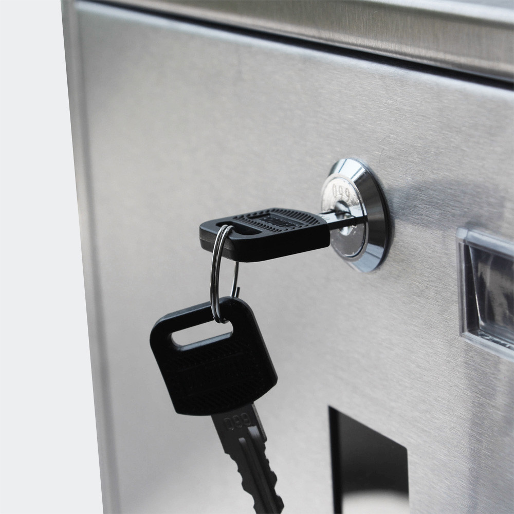Prostřednictvím 3 praktických průzorů na přední straně již zvenčí vidíte, zda máte poštu. Na přední straně je rovněž umístěno průhledové okénko pro jmenovku. Ke schránce jsou 2 klíče. Díky cylindrickému zámku nabízí poštovní schránka větší bezpečnost než běžné schránky. Poštovní schránka se montuje na zeď v několika jednoduchých krocích. Odpovídající montážní materiál je již součástí dodávky.