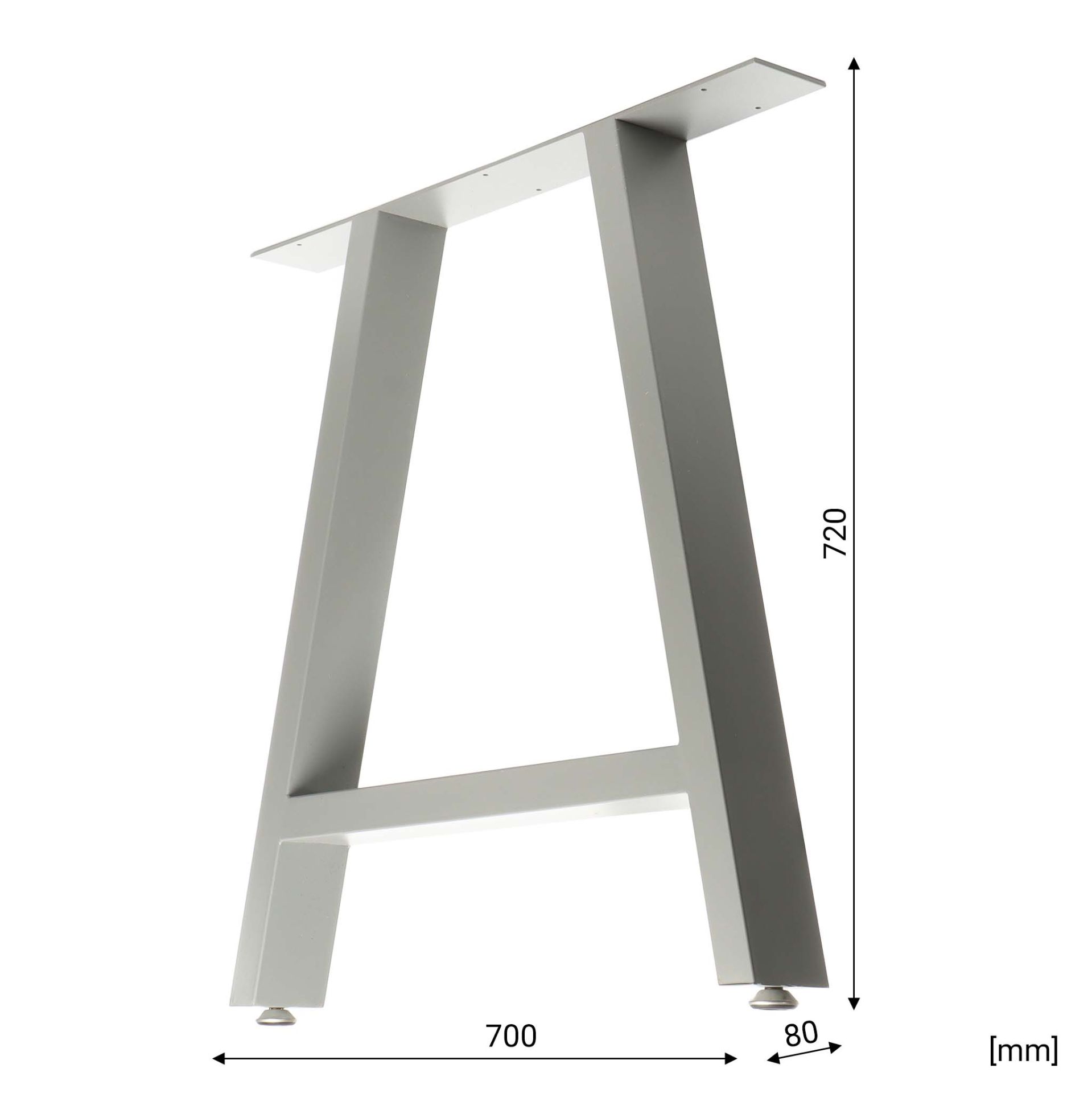 Elegantní tvar do tvaru A dělá ze stolu poutavý prvek, aniž by byl rušivý. S celkovými rozměry 70 x 72 cm nabízejí rámy stolu dostatek prostoru pro různé stolové desky. Jednotlivé nohy mají tloušťku 8 x 4 cm a tloušťku materiálu 0,9 mm. Šroubovací destičky o tloušťce 4 mm umožňují snadné upevnění desky stolu v několika bodech.