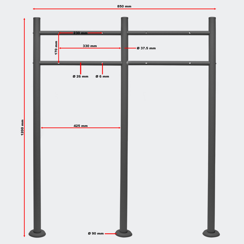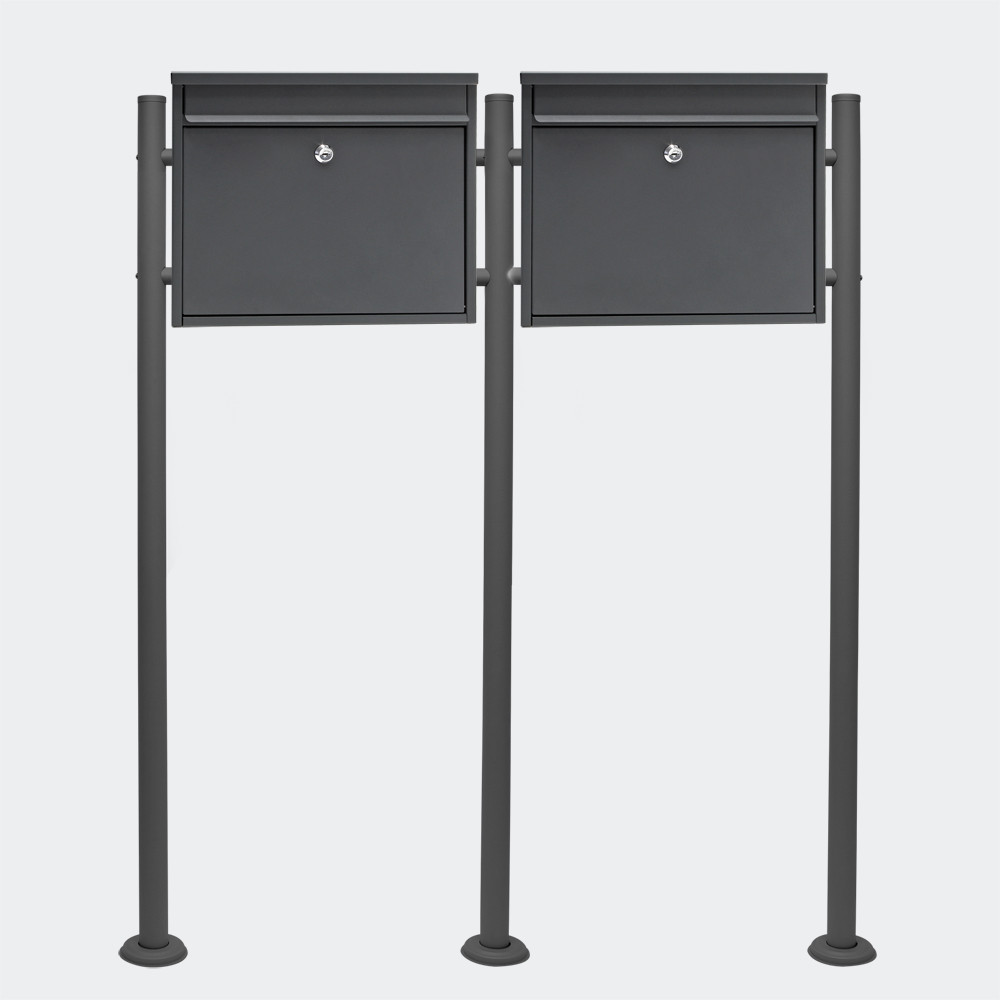 Stojan pro instalaci dvou poštovních schránek v nadčasově klasickém vzhledu. Montáž pomocí hmoždinek, které jsou ukotveny v zemi, je velmi snadná. Tímto způsobem lze vzhled a především pozemní prostor, na kterém je umístěna poštovní schránka, snadno přizpůsobit vašim vlastním potřebám.