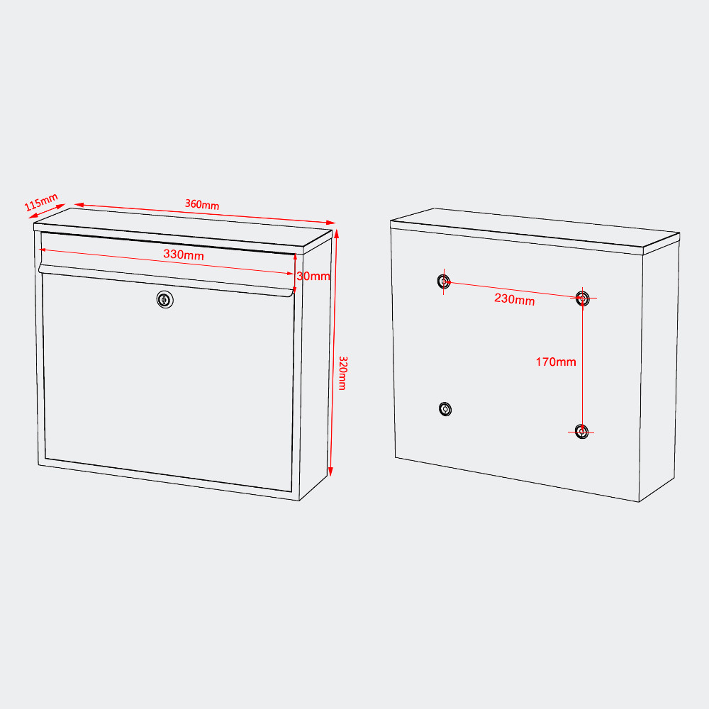 • Rozměry Poštovní schránka: 36 x 32 x 11,5 cm