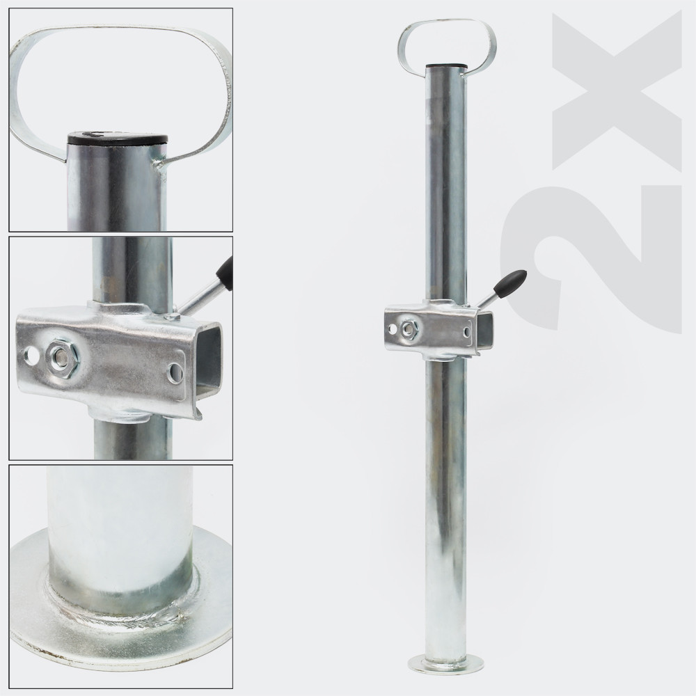 Opěrné kolo je vyrobeno z vysoce kvalitní pozinkované oceli a je navrženo pro nosnost až 362 kg. Dvě opěry mají nosnost 150 kg. Výška opěrného kola je nastavitelná, což umožňuje snadné odpojení nebo připevnění tažného zařízení k tažné kouli. Plné gumové pneumatiky s ocelovými ráfky také nabízejí tu výhodu, že zabraňují úniku vzduchu, a tím eliminují riziko defektu pneumatiky.