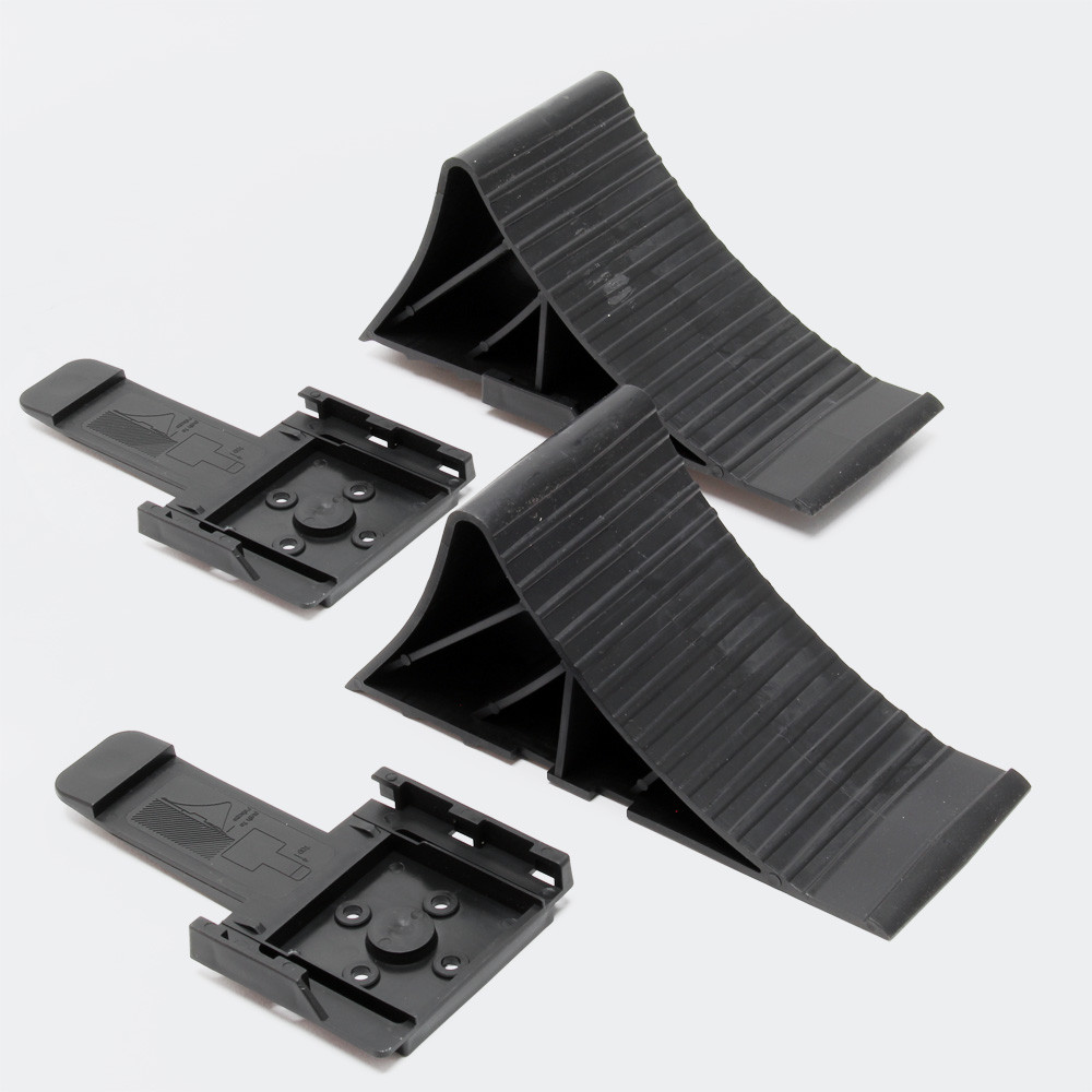 Tato praktická sada podpěr kol karavanu poskytuje vše, co potřebujete k řádnému zaparkování přívěsu. Sada se skládá z odolného podpěrného kola, dvou klínů pod kola s odpovídajícími svorkami, tří svorek pod kola a dvou parkovacích podpěr.