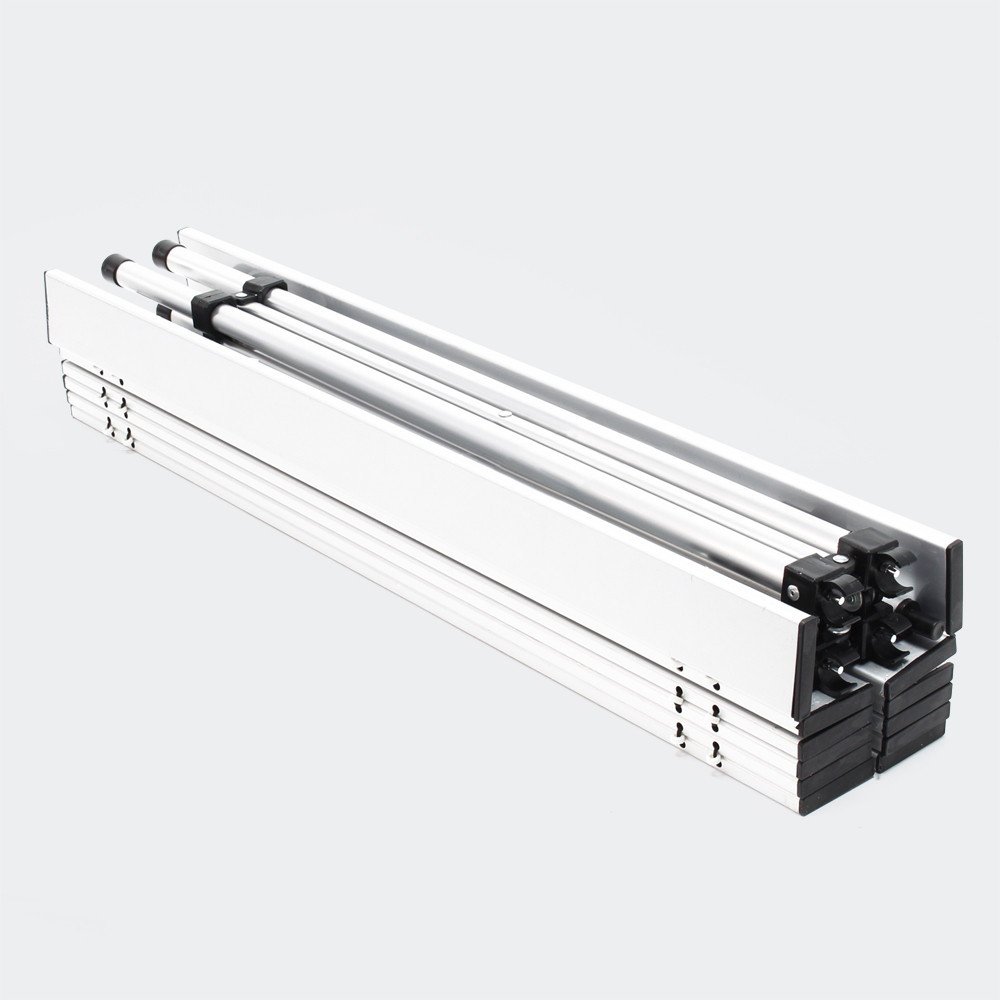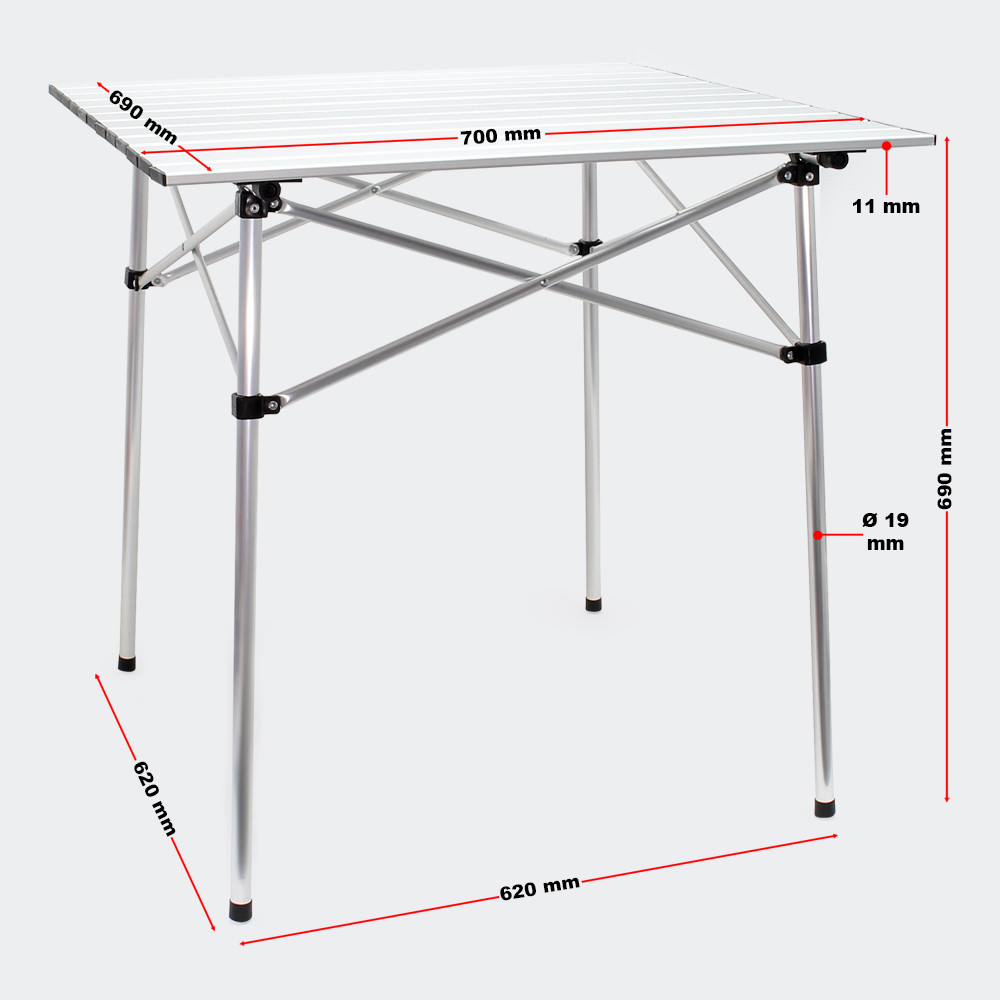 Nízká hmotnost pouhých 2,5 kg a možnost skládání do velikosti 70 x 13 x 11,5 cm usnadňují ukládání a přepravu. Deska stolu je tak jednoduše srolována a vyjmuta z rámu, který pak může být bez velké námahy složen. Taška na přenášení, která je součástí dodávky, umožňuje bezpečné a prostorově úsporné uložení složených dílů a zajišťuje, že tento kempingový stůl nezabere při skladování doma mnoho místa a vejde se do jakéhokoli automobilu. V případě potřeby lze stůl postavit rychle a bez velkého úsilí.