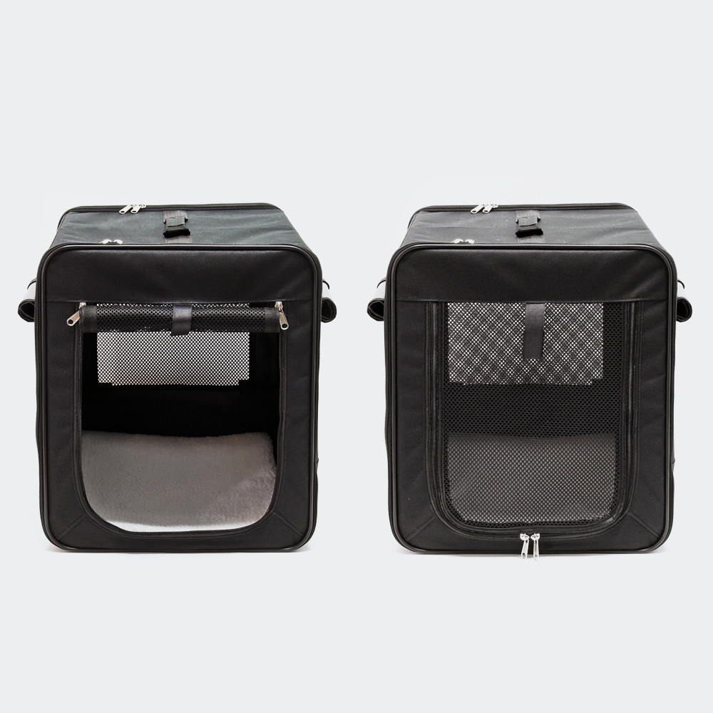 Přepravní box o velikosti 76 x 56 x 61 cm je ideální pro větší plemena psů do cca 20 kg, jako jsou boxeři, angličtí buldoci nebo shetlandští ovčáčtí psi.Upozorňujeme, že taška není vhodná pro přenášení zvířete, ale pouze jako možnost dopravy, například při jízdě autem, nebo jako místo na spaní a útočiště.