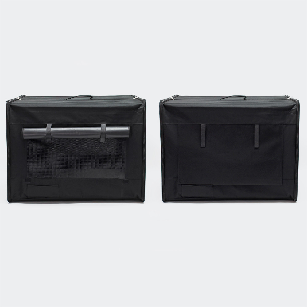 Přepravní box je vyroben z odolného polyesteru a má pevný ocelový rám. Zaujme nízkou hmotností a jednoduchou montáží bez nářadí a lze jej složit v několika jednoduchých krocích, aby se ušetřilo místo, když se nepoužívá.