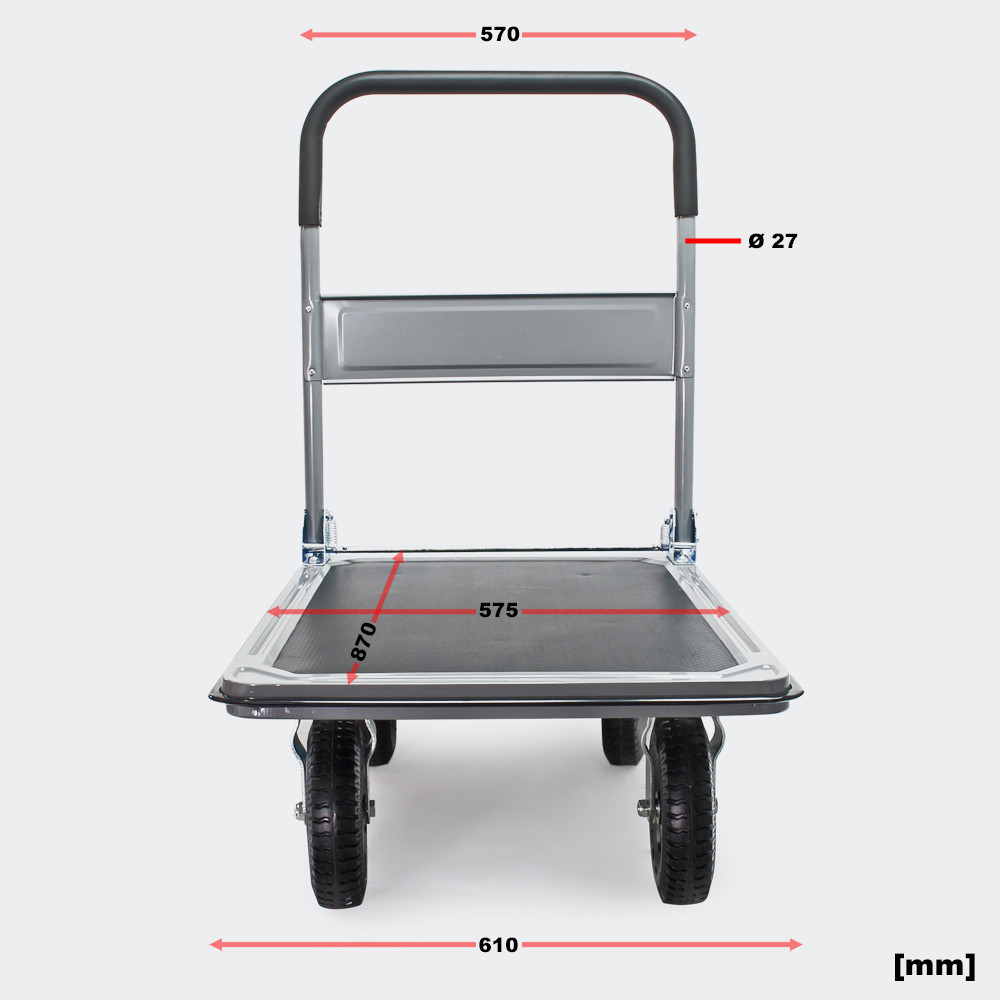 Skládací vozík s plošinou max. 300 kg, pneumatiky a neklouzavý povrch