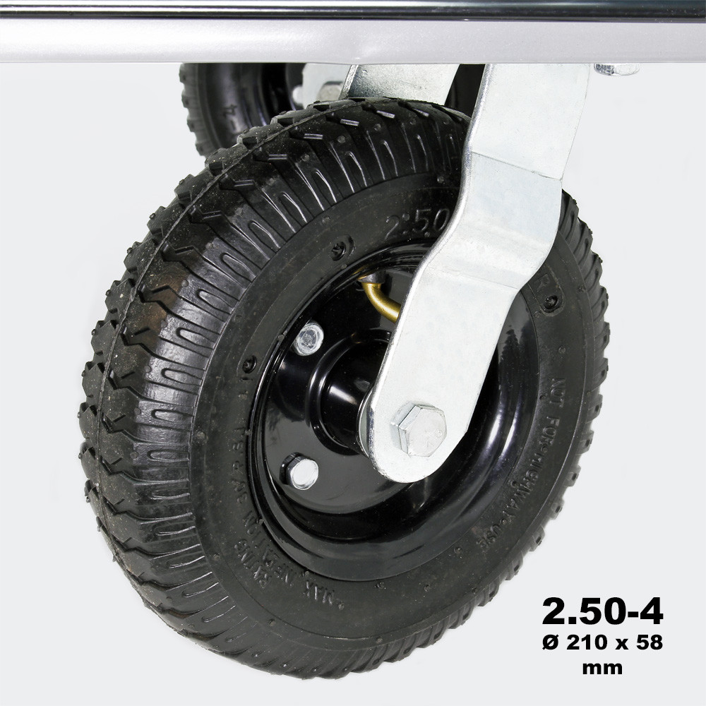 Povrch vozíku je vybaven neklouzavým povrchem a poskytuje ochranu proti klouzání předmětů. K dispozici jsou dvě řiditelné a dvě pevné pneumatiky. Pneumatiky jsou pneumatické a řiditelné, což jim umožňuje obejít překážky.