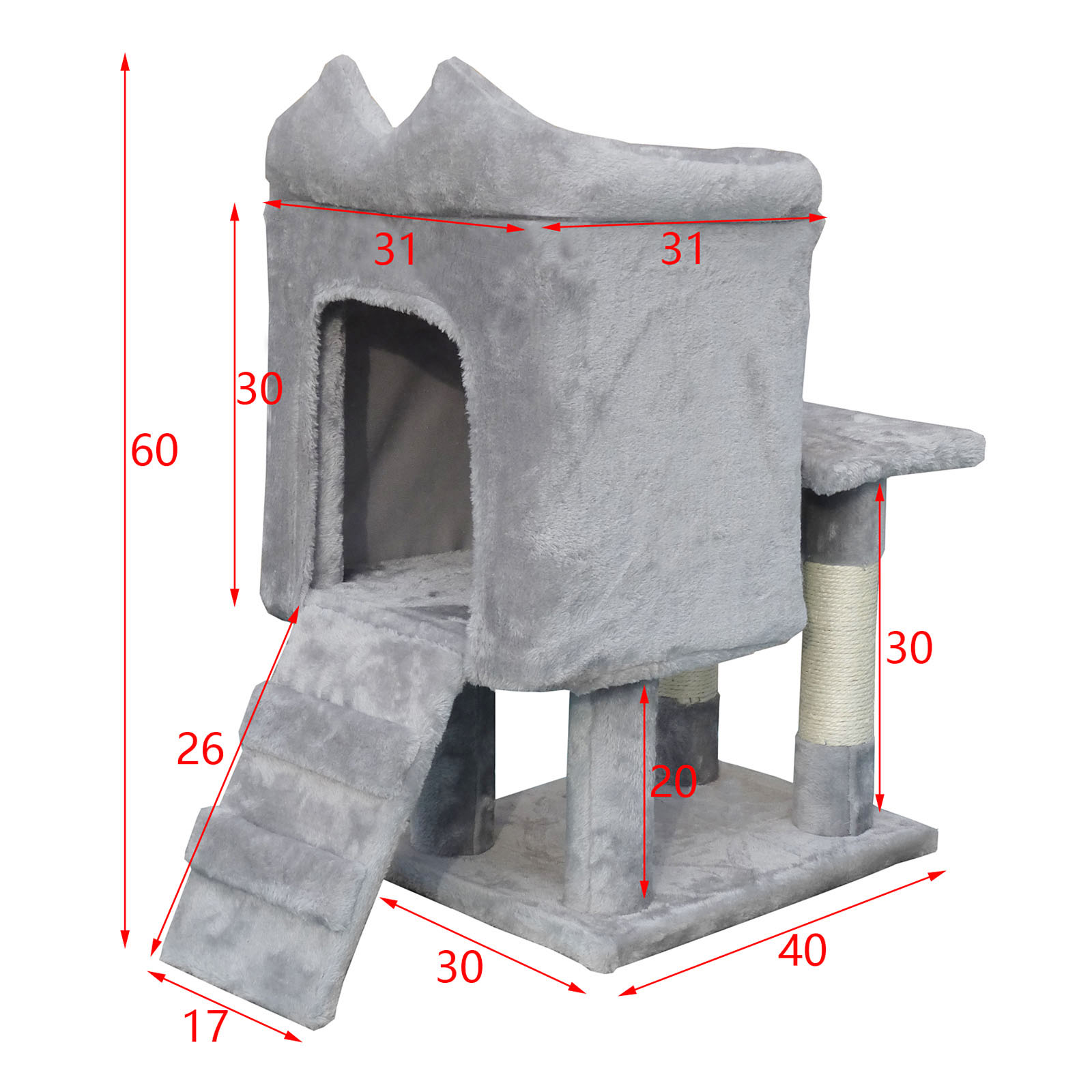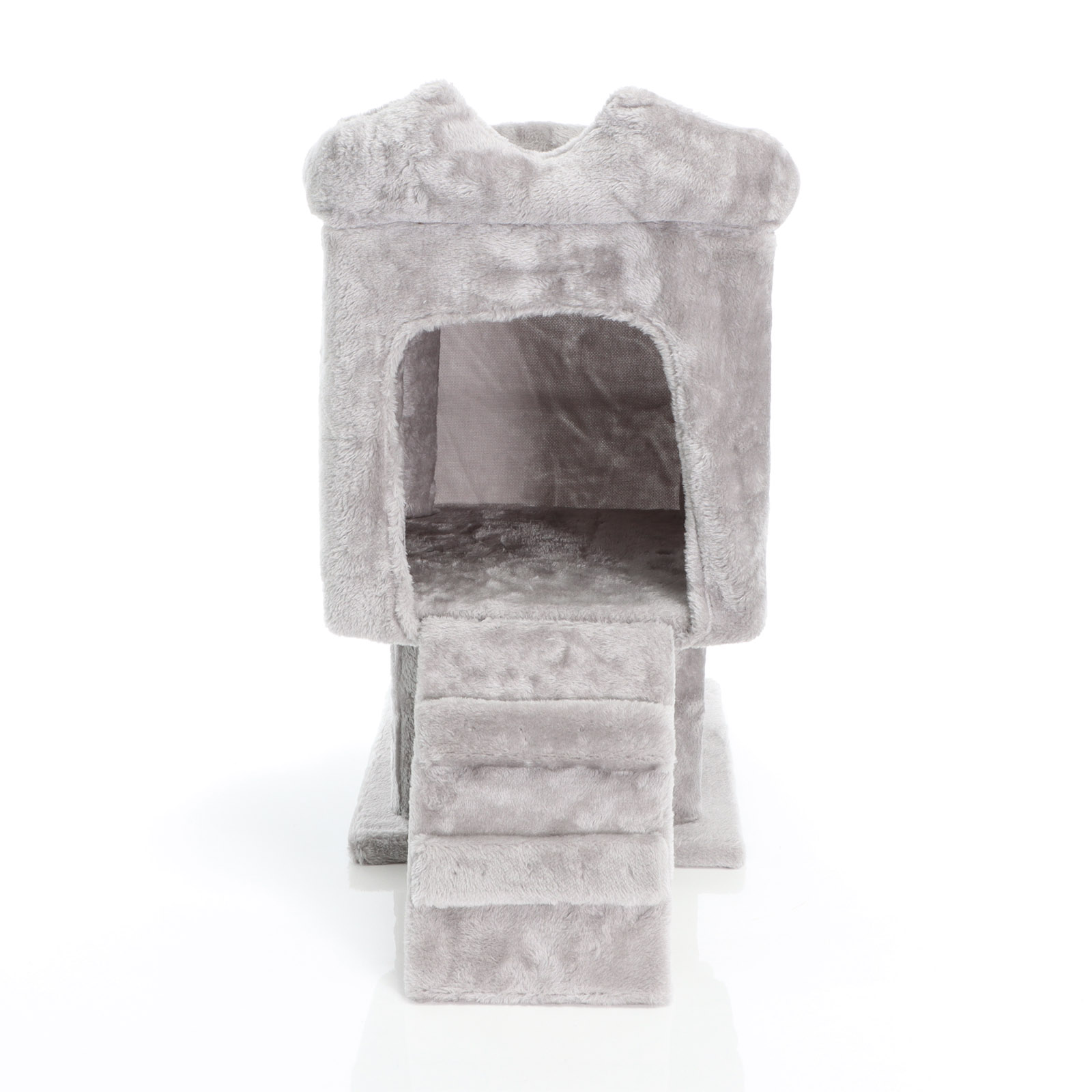 Tento škrabadlo pro kočky Fudajo ze světle šedého plyše nabízí domácí kočce kus nábytku, kde si může škrábat a brousit drápy, a zároveň úkryt a místo k ležení. Náš škrabadlo je dodáváno s krychlovým kočičím domečkem, do kterého kočička vstupuje po žebříku. Uvnitř se kočka může pohodlně usadit a schoulit se k útulnému zdřímnutí. Pokud jí měkký povrch nestačí, můžete do kočičího domečku umístit i pohodlnou deku (není součástí balení).