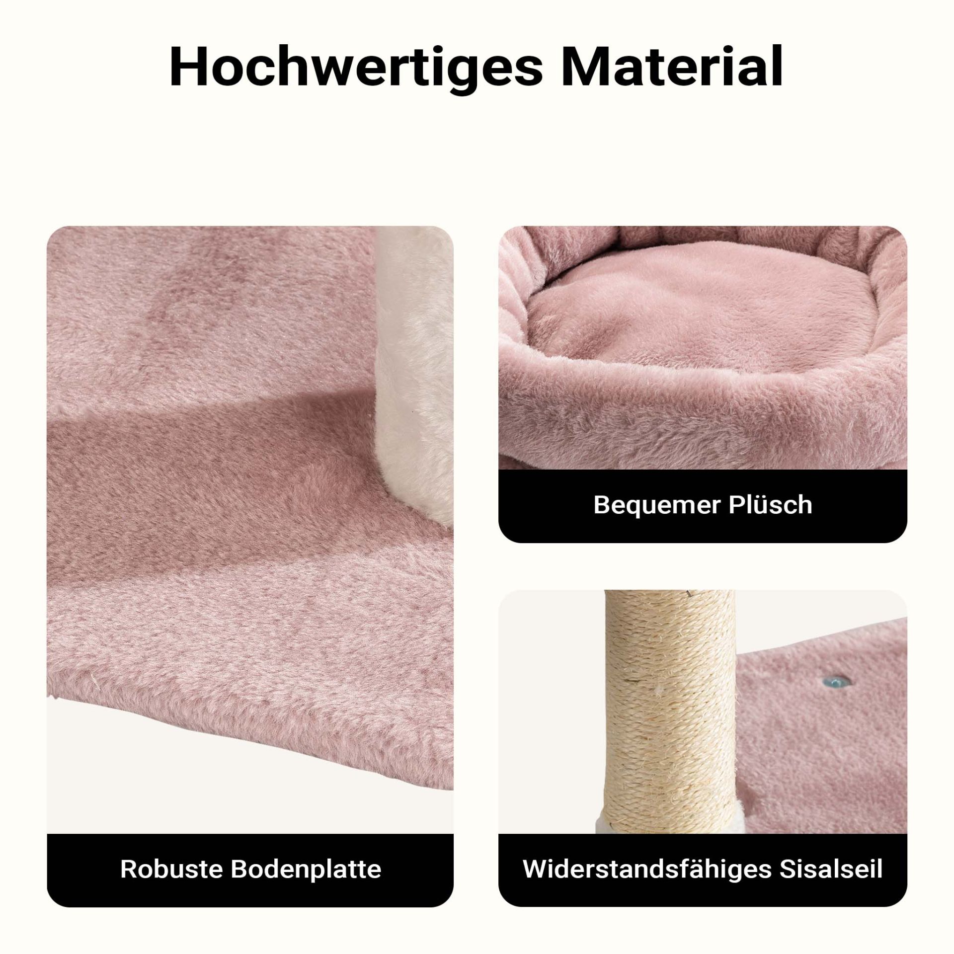 Škrabadlo pro kočky je víceúčelovým kočičím škrabadlem a zároveň skutečným poutavým prvkem. 162 cm vysoké škrabadlo potažené růžovým plyšem je vybaveno roztomilými doplňky, jako je škrabadlo ve tvaru dvou třešní. Dvě velké podstavce, na kterých jsou umístěny úrovně, zajišťují potřebnou stabilitu.