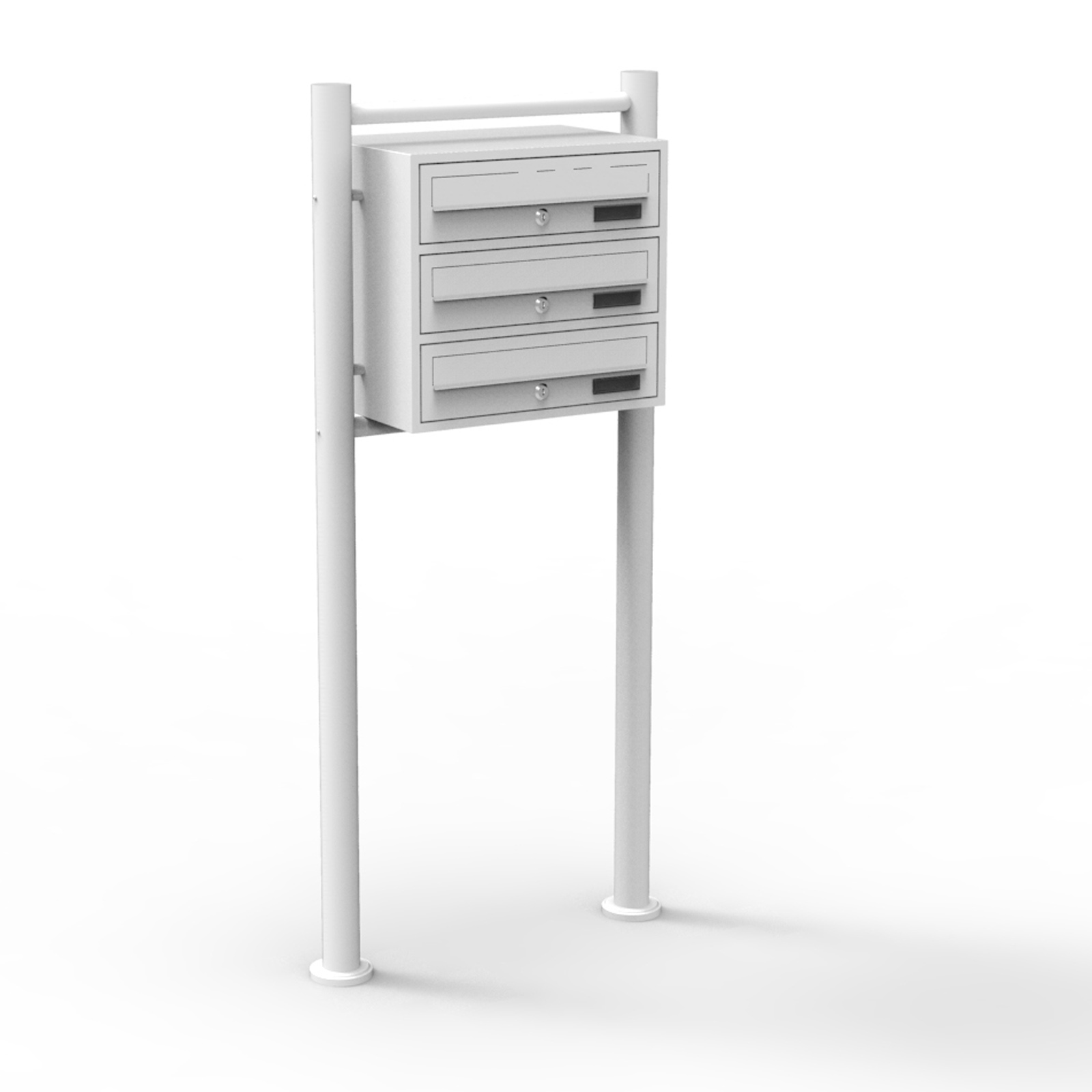 Systém poštovních schránek přesvědčí 3 přihrádkami, z nichž každá má vlastní průhledové okénko na jmenovky a dva klíče. To znamená, že systém může jako poštovní schránku používat více lidí. Navzdory mnoha přihrádkám nezabere systém poštovních schránek díky své kompaktní konstrukci téměř žádné místo. 3 přihrádky jsou uspořádány nad sebou.