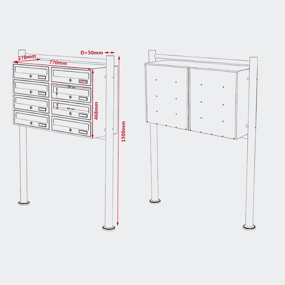 • rozměry poštovní schránky: 270 x 770 x 468 mm
