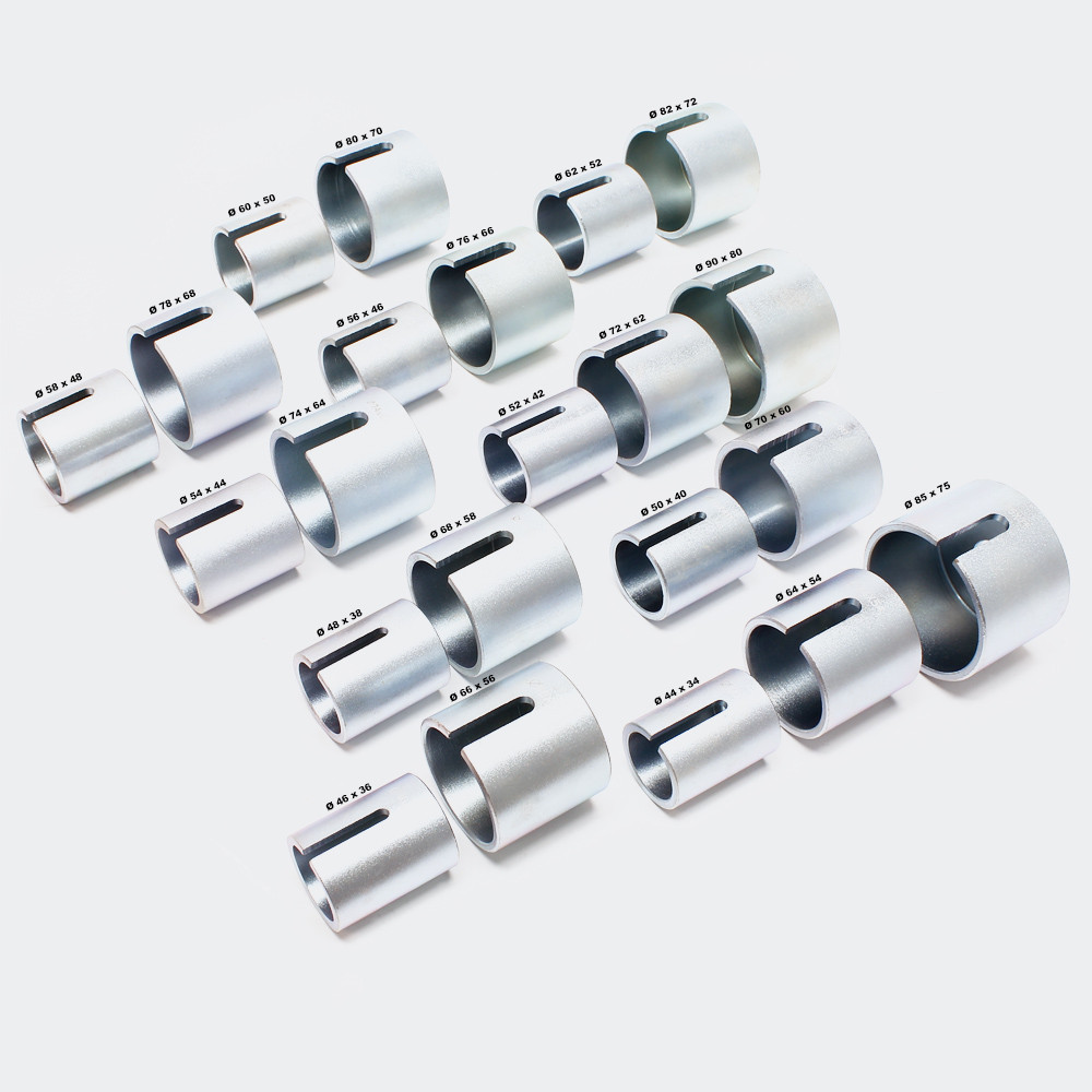 • 34/44 mm – 36/46 mm – 38/48 mm – 40/50 mm – 42/52 mm – 44/54 mm – 46/56 mm – 48/58 mm – 50/60 mm – 52/62 mm – 54/64 mm – 56/66 mm – 58 / 68mm – 60/70mm – 62/72mm – 64/74mm – 66/76mm – 68/78mm – 70/80mm – 72/82mm – 75/85mm – 80/90mm