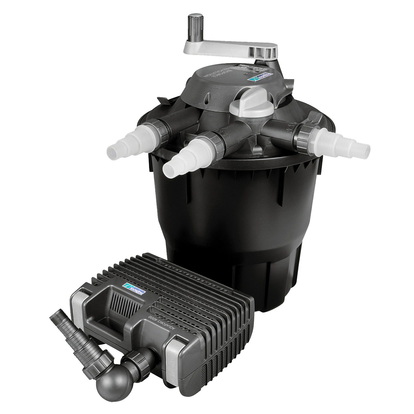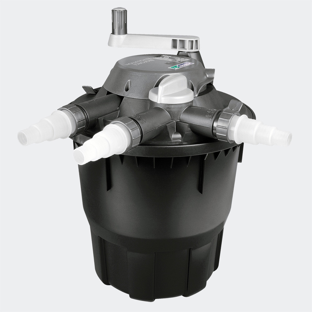 Kompletní sada filtrů pro jezírka do 12 000 litrů (rybníky 6 000 litrů) sestávající z Bioforce Revolution 12000 a čerpadla odpadní vody AquaForce o objemu 4000 litrů za hodinu pro přepravu větších částic nečistot z rybníka do filtru jezírka. Bioforce Revolution je účinný tlakový filtr s vestavěným UVC čističem a jedinečným čisticím mechanismem, který lze umístit vedle rybníka nebo jej částečně zakrýt v zemi, takže je do značné míry skrytý před zrakem. Protože se v tomto filtru vytváří tlak, lze vodu opouštějící filtr také použít k napájení vodopádu, aniž by musel být filtr umístěn v horní části vodopádu. Nečistoty dodávané zařízením AquaForce 4000 jsou velmi účinně odfiltrovány z vody v jezírku pomocí filtračních bloků Cypricube. Cypricube, vyvinutý výhradně společností Hozelock, sestává ze stovek malých čtvercových pěnových kostek, které společně tvoří velkou filtrační plochu, což má za následek vynikající čisticí účinek. Přefiltrovaná voda poté vstupuje do spodní komory Bioforce Revolution, kde je umístěno Kaldnesovo biomedium, které poskytuje velmi velkou adhezní plochu a nepřetržitou obnovu bakterií. Tyto bakterie jsou nepostradatelné pro rozklad škodlivých částic nečistot a jejich přeměnu na užitečné látky pro jezírko. Integrovaný UVC čistič má 18 Wattovou UV lampu, aby se zabránilo „zelené vodě“ v důsledku plovoucích řas. Výsledkem je jasný, ale také velmi zdravý rybník. Všechny Bioforce Revolution mají jedinečný čisticí mechanismus, který vám umožní vyčistit filtr během několika minut a odstranit nečistoty. Otočením otočné rukojeti na horní straně filtru pěnové bloky Cypricube jsou opláchnuty ve filtru. Znečištěnou vodu lze snadno vypustit z filtru otočením spínače na víku. Pomocí dodávaných hadicových přípojek můžete k filtru snadno připojit jezírkovou hadici o průměru hadice Ø 20/25/32 nebo 25 mm.