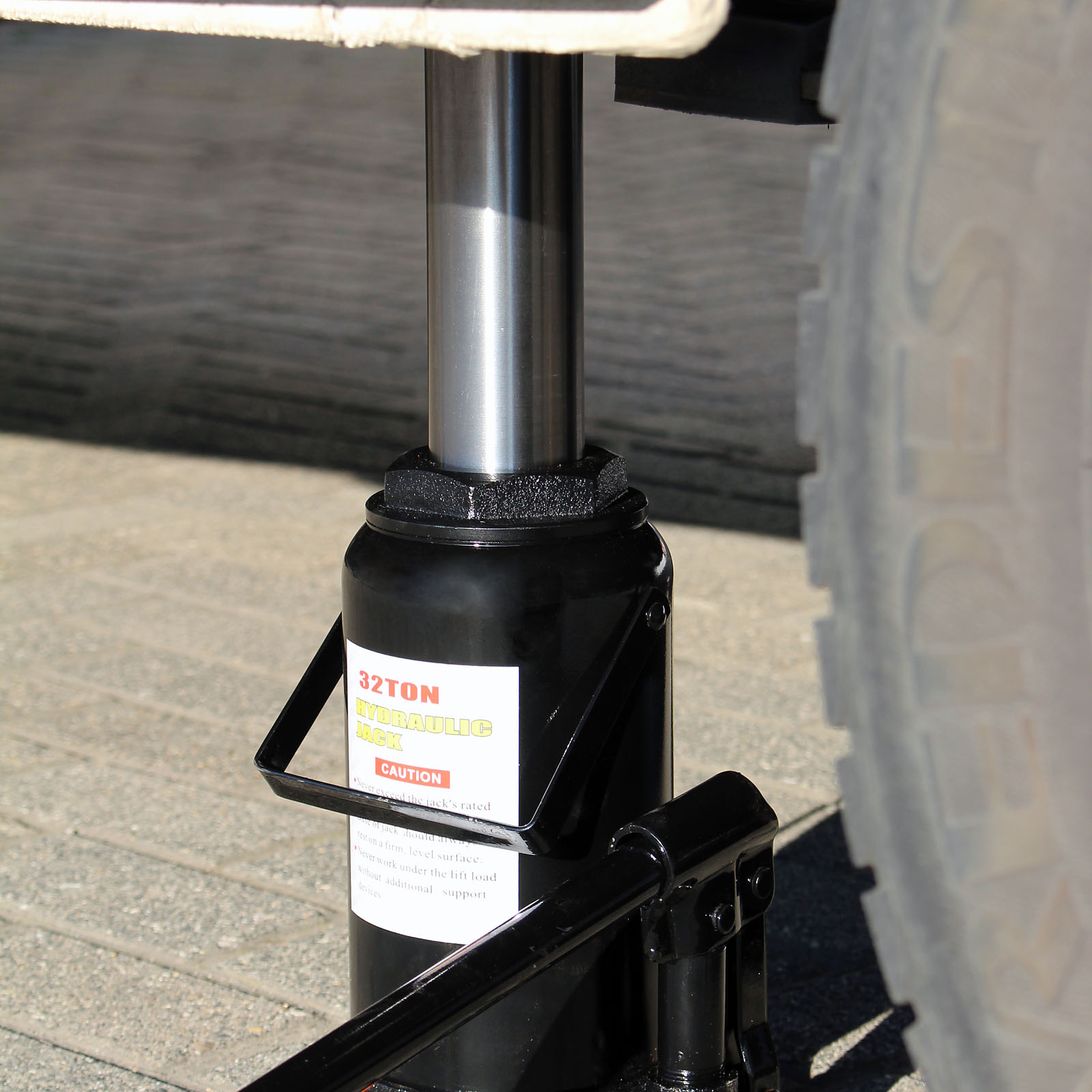 Nosná deska o průměru 54 mm a výkonná hydraulická jednotka zajišťují bezpečné zvedání nákladu až do hmotnosti 32 000 kg. Plynule působící páka pumpy zajišťuje, že zvedák dosáhne výšky zdvihu 180 mm. Žebrovaná kontaktní plocha zabraňuje sklouznutí nákladu, zatímco velkorysá základní deska zajišťuje bezpečné postavení zvedáku.