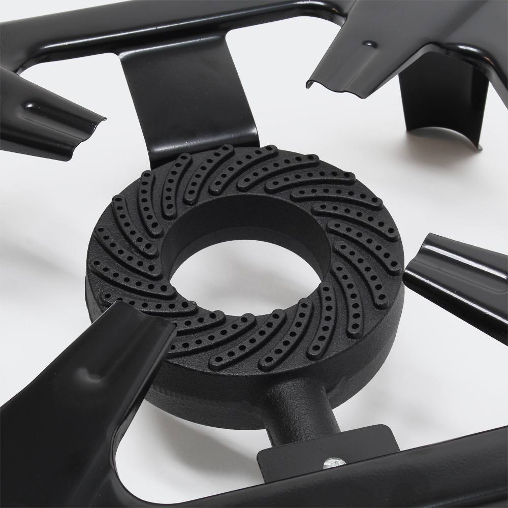 Tento venkovní plynový sporák je ideální pro přípravu různých jídel. Plynový sporák je vyroben z oceli a jeho povrch je práškově natírán. Díky tomu je zařízení robustní a ideální pro vaření, protože vydrží vysoké teploty. Hrnce s většími rozměry lze bezpečně umístit na rám 40 x 40 cm.