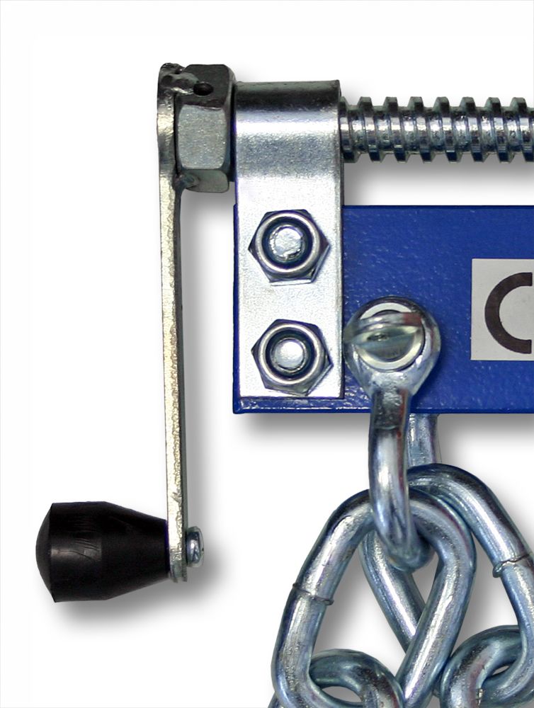 Pracovní plochu lze nastavit podélně o 340 mm pomocí šnekového pohonu s ruční klikou Upevňovací oka