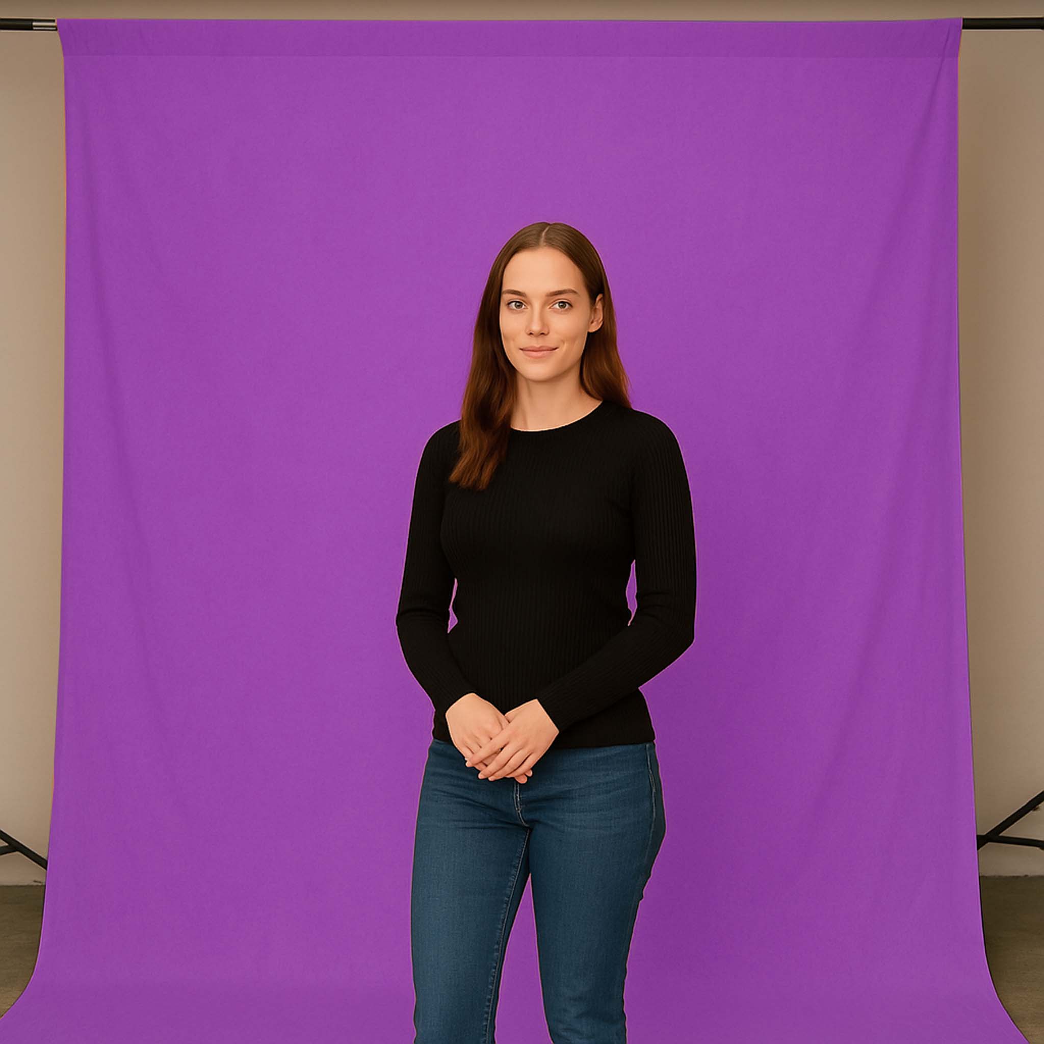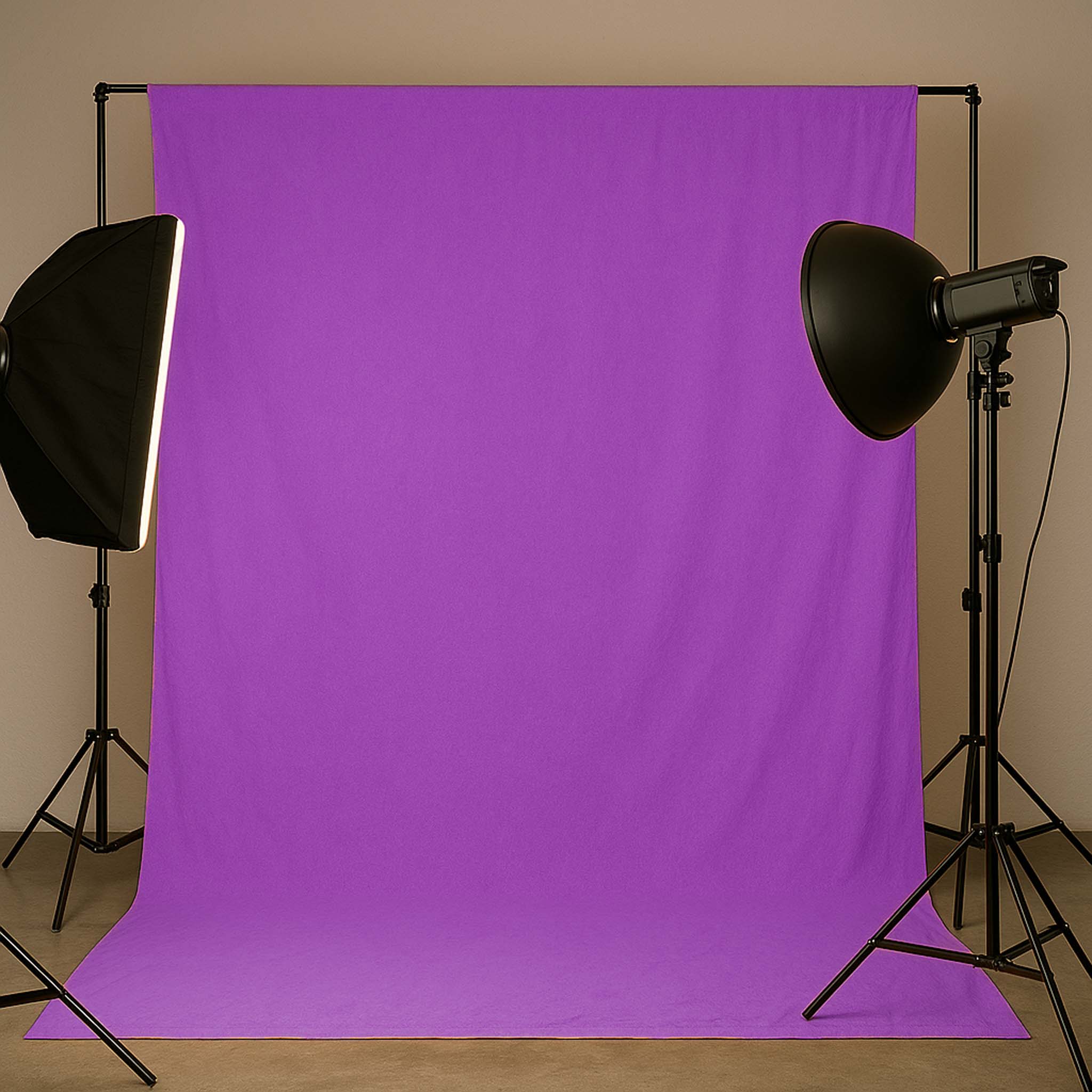 signální fialové barvě se dodává kompaktně složené. Vzniklé záhyby lze v případě potřeby vyžehlit. Tloušťka látky je 140 g/m2, a proto nabízí dostatečnou neprůhlednost pro většinu použití. Pokud to nestačí, doporučujeme použít silnější textilní pozadí nebo kartonové pozadí. Textilní pozadí není vhodné pro podvodní fotografii.