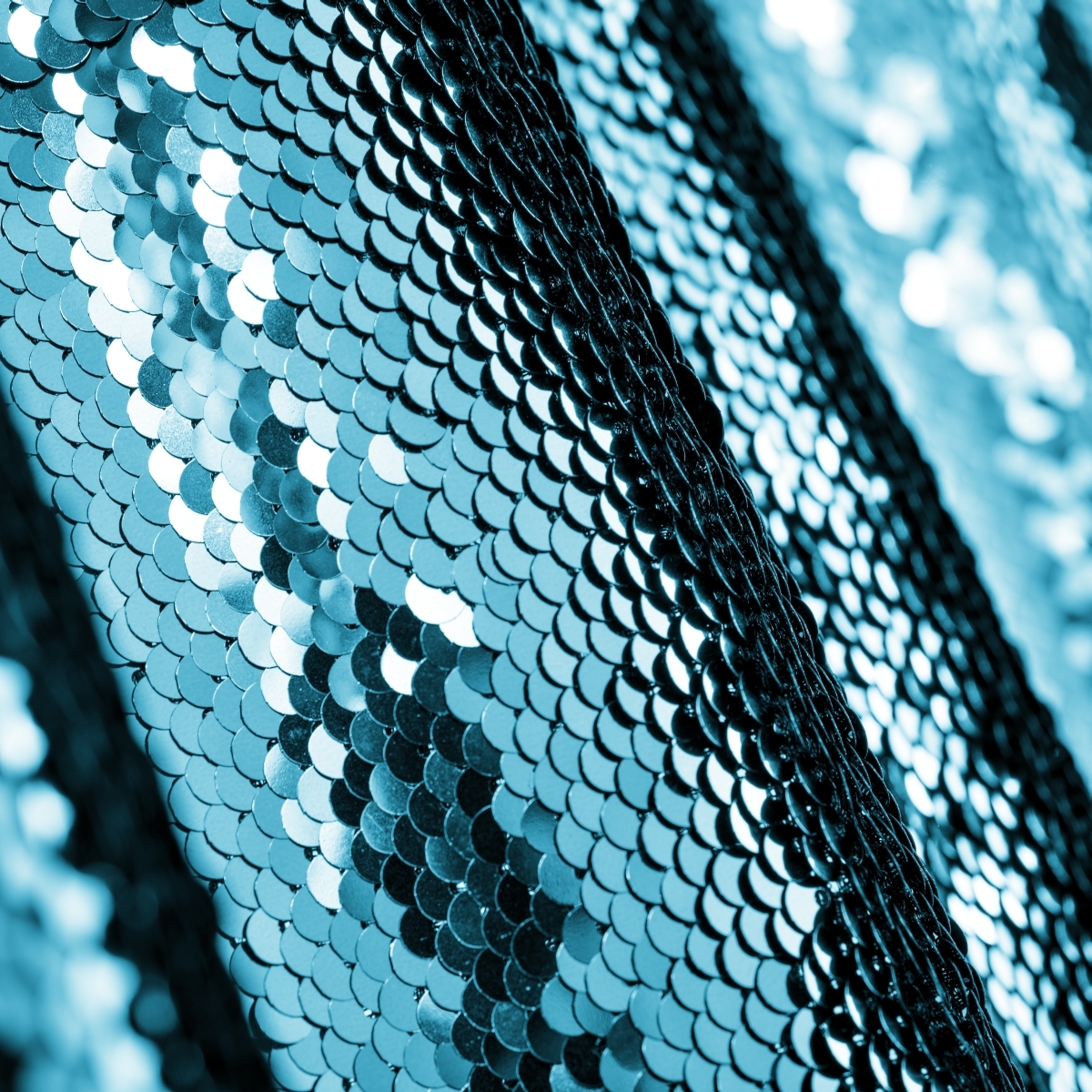 extra. Látka se skládá z kulatých lesklých flitrů ve dvou barvách