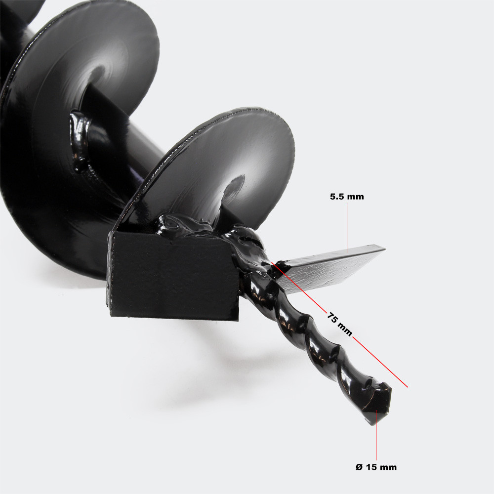 Vrták obsažený v této sadě má průměr 100 mm a je ideální pro rychlé vrtání čistých a přesných otvorů. Tento bit je vyroben z robustní litiny a je obzvláště spolehlivý a odolný. Tvrdý hrot může snadno ukázat svůj plný potenciál ve všech typech půdy a umožňuje tak rychlé a přesné vrtání.